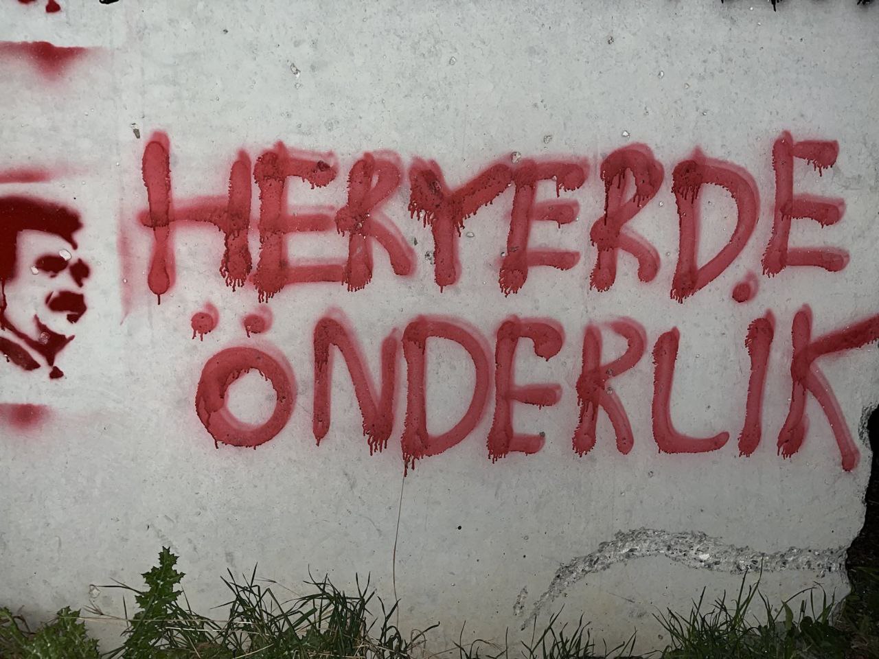 İSTANBUL – Jinên Tolhildêr İnisiyatifi, 13 kasim 2023 günü İstanbul’un Avcılar ilçesi Yeşilkent mahallesinde duvarlara “Önder APO’ya Özgürlük” , “TC Hesap Verecek” , “Güneşimizi Karartamazsınız” , “Önderlik Heryerde” ve “Faşistler Hesap Verecek” yazıları ile Önder APO’nun silüetini çizdiler.