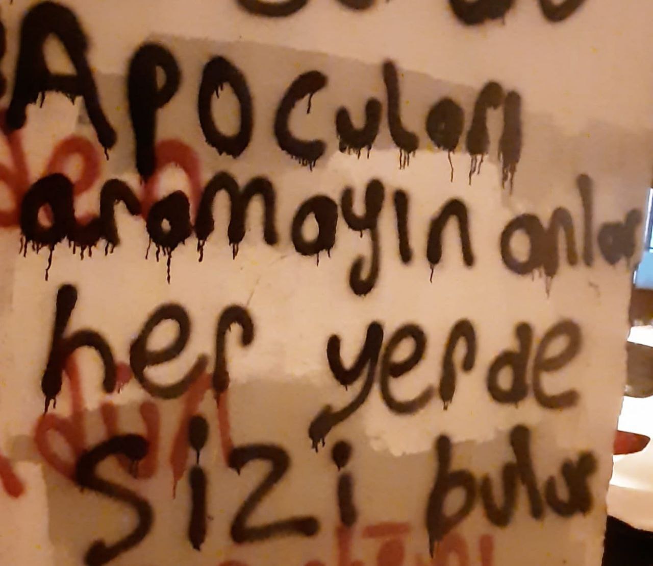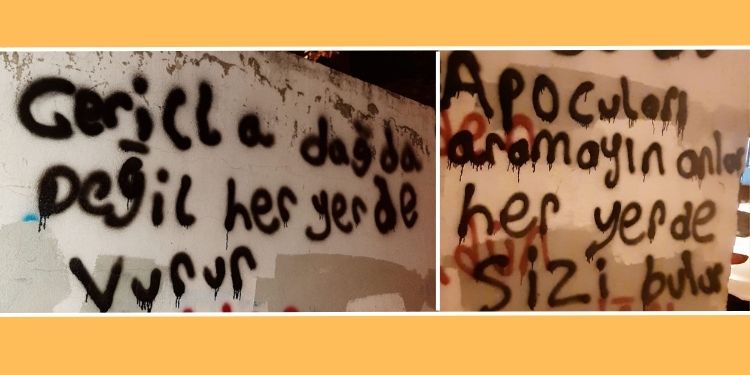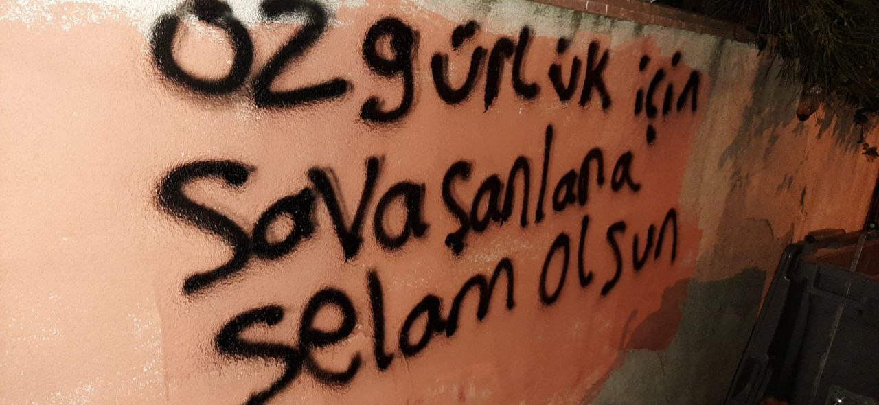 İnisiyatif üyeleri tarafından duvarlara, “Özgürlük için savaşanlara selam olsun” “Gerilla dağda değil her yerde vurur” “Düşmanın olduğu her yer hedefimizdir” ve “Apocuları aramayın onlar her yerde” yazıldı.