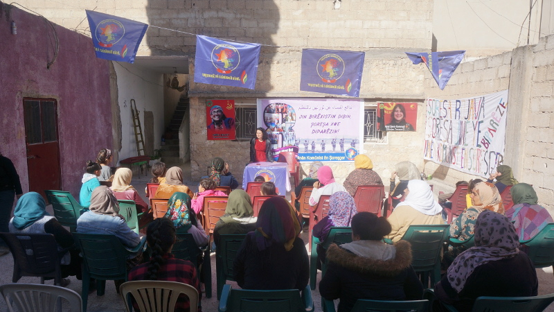 KOBANÊ – Devrimci Komünist Kadınlar (JKŞ), 8 Mart Dünya Emekçi Kadınlar Günü hazırlıkları çerçevesinde “Yaşasın Kadın Grevi/Kadın Emeği Değerlidir” başlıklı panel düzenledi.