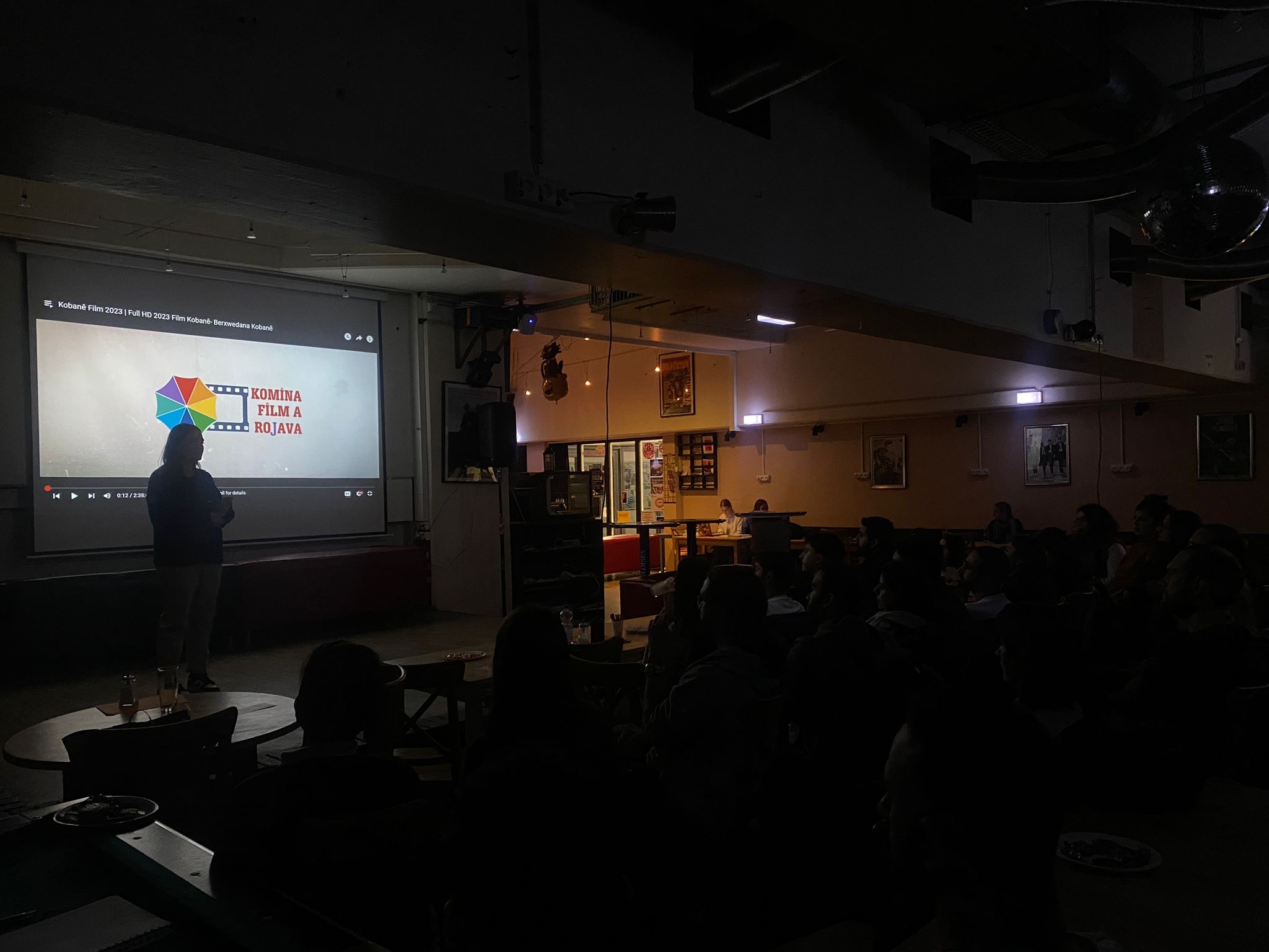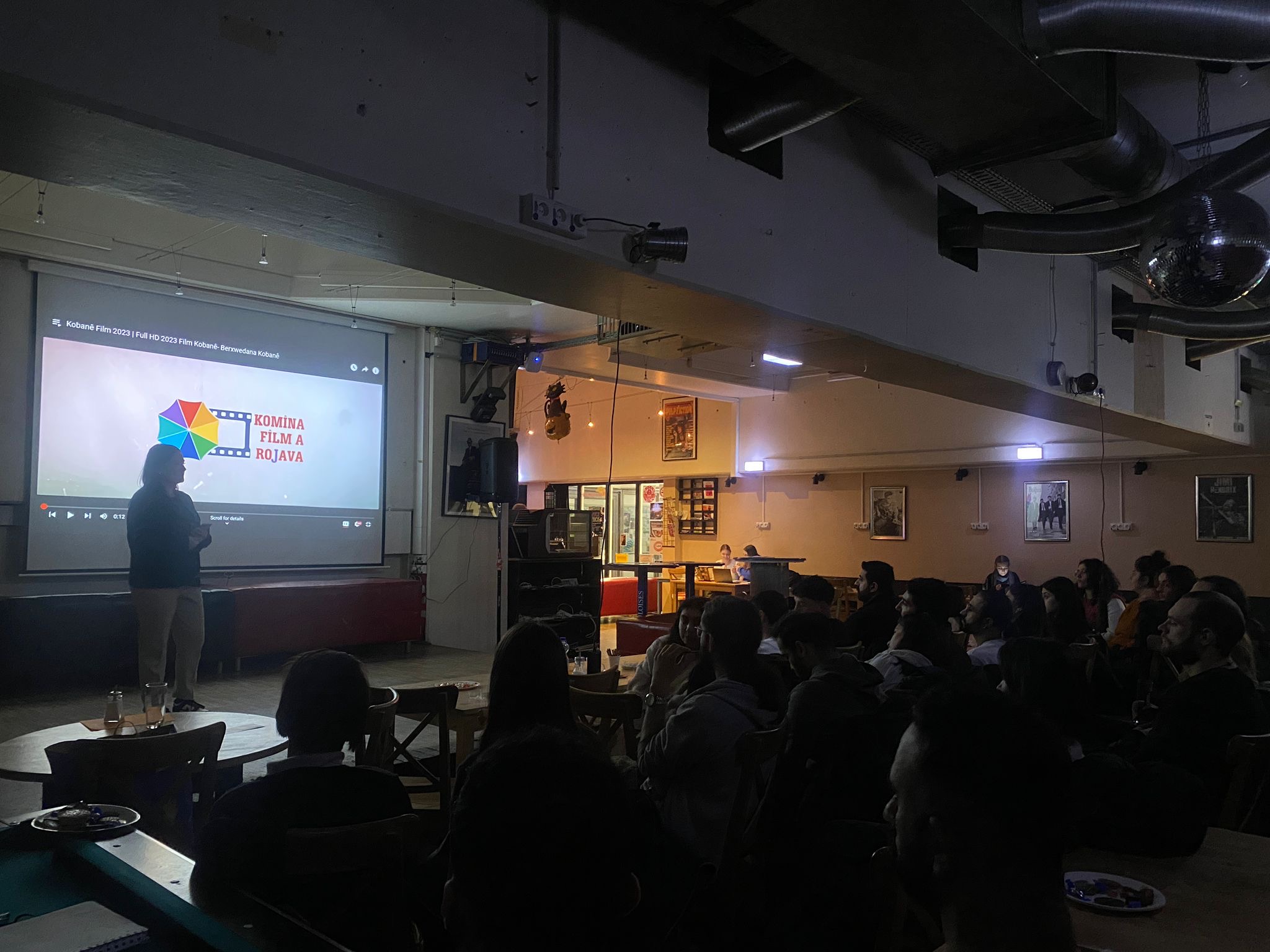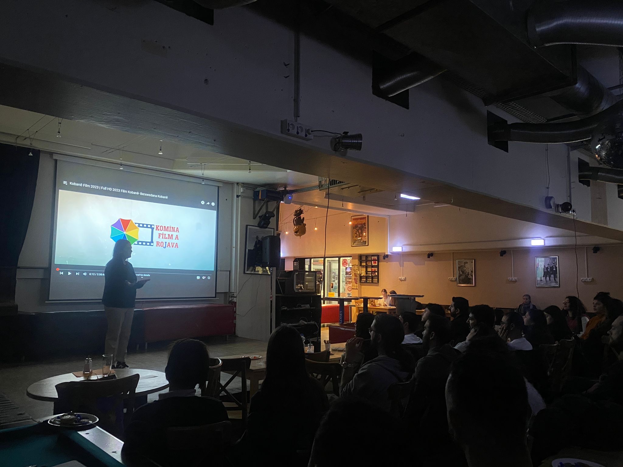 Etkinliğe yaklaşık 40 Kürt ve enternasyonalist öğrenci katıldı. Etkinlik, 2014/15’te Kobane’deki direnişin, ne şekilde gerçekleştiği ve saldırıların nedeni üzerine yapılan konuşma ile başladı.