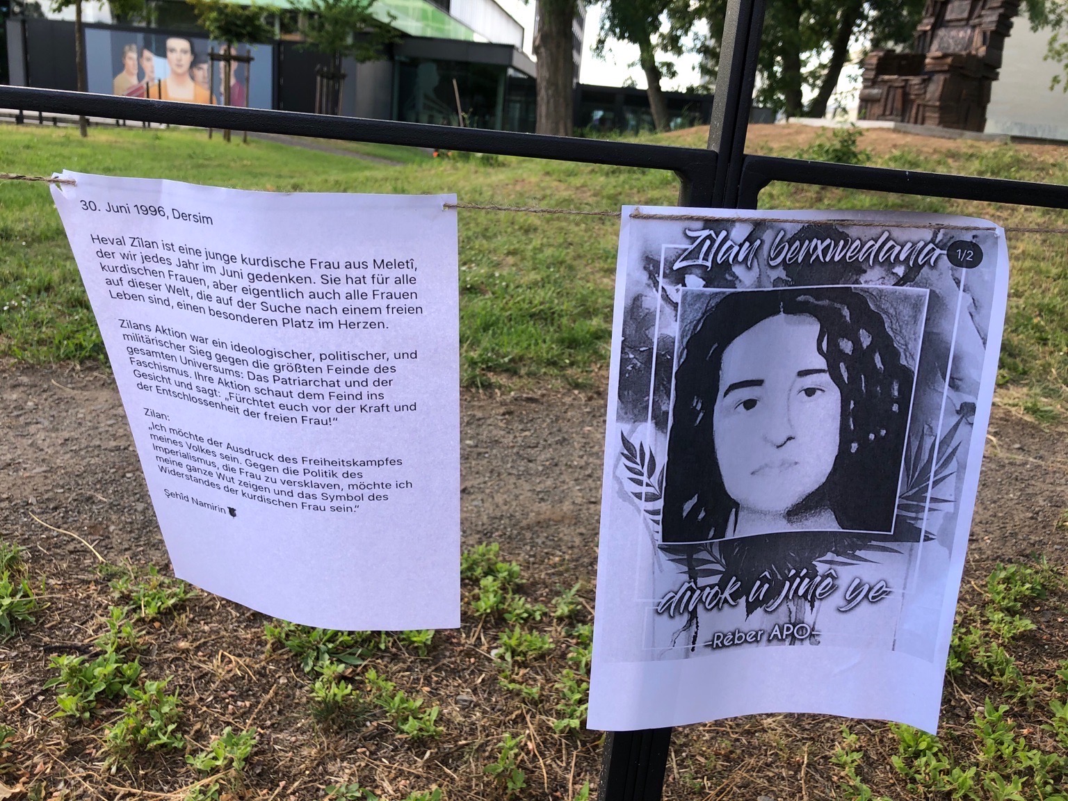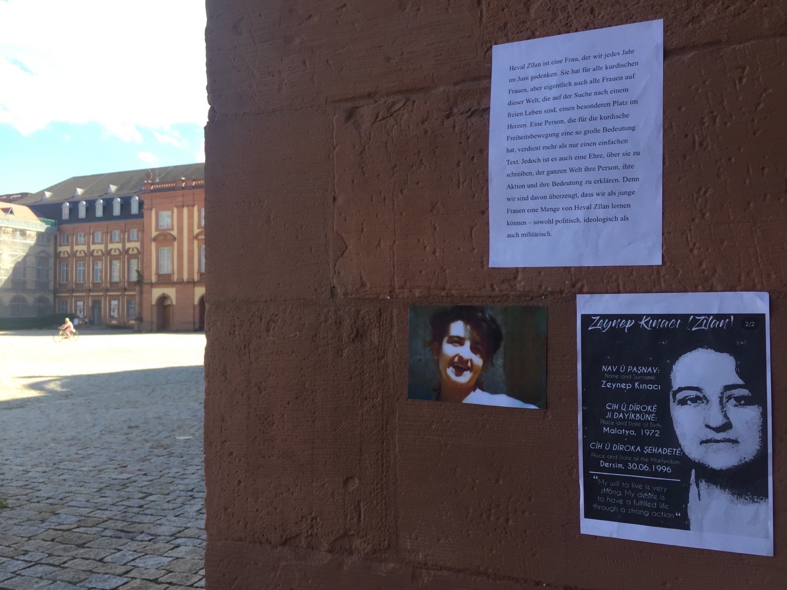 Jinên Xwendekar ên Kurdistan aktivisti genç kadınlar, 30 Haziran 1996 yılında gerçekleştirdiği fedai eylemle şehit düşen PKK gerillası Zîlan (Zeynep Kınacı) anısına Darmstadt, Frankfurt, Mannheim ve Mainz’de üniversite girişlerinde afişleme çalışması yaptı.