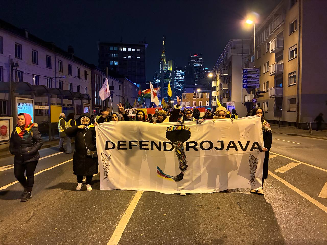 FRANKFURT- Almanya’nın Hessen eyaletine bağlı Frankfurt kentinde, Teko-JIN (Tevgera Jinên Têkoşer), TCŞ (Tevgera Ciwanên Şoreşger), YJK-E ve Frankfurt bölge meclisleri öncülüğünde kitlesel eylem düzenlendi.