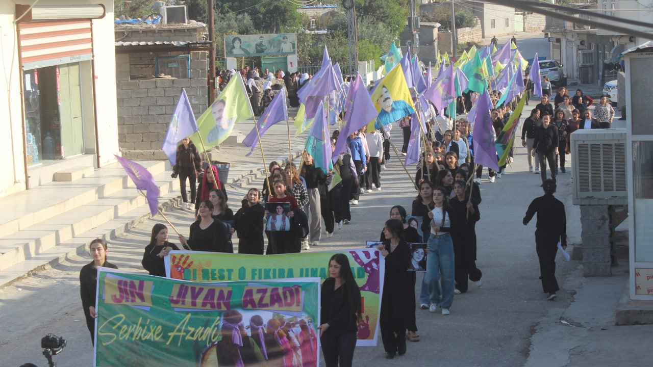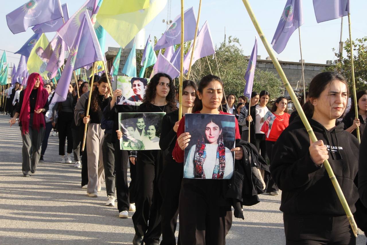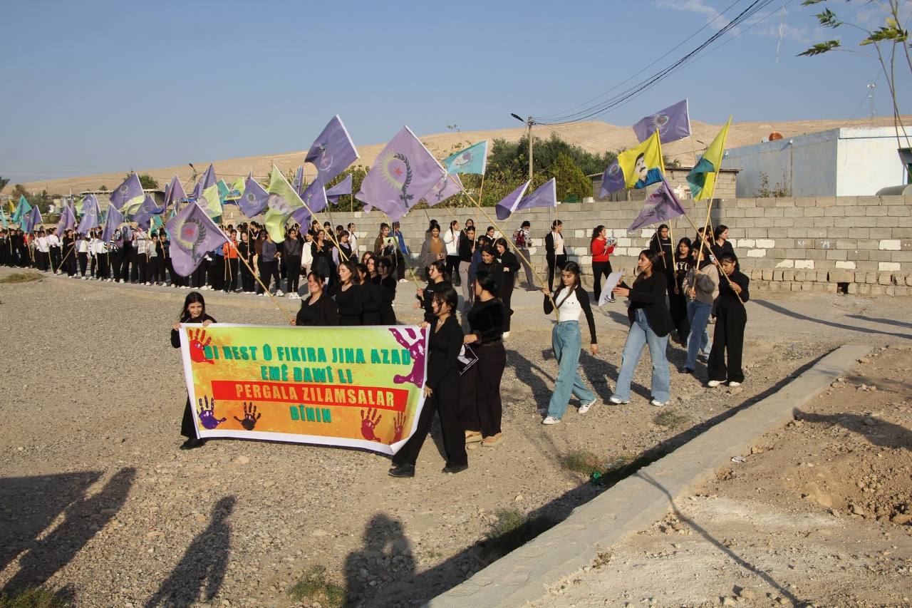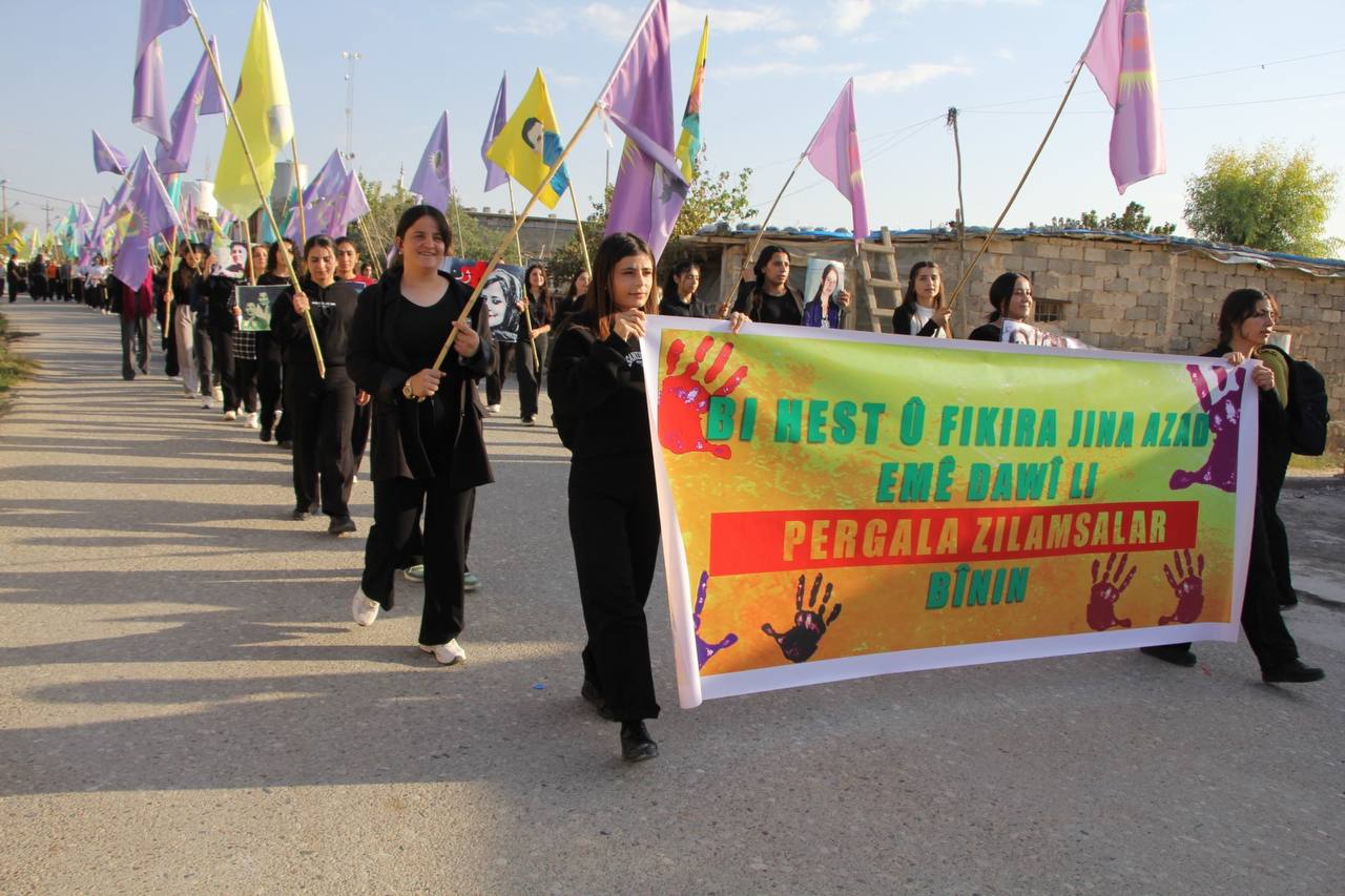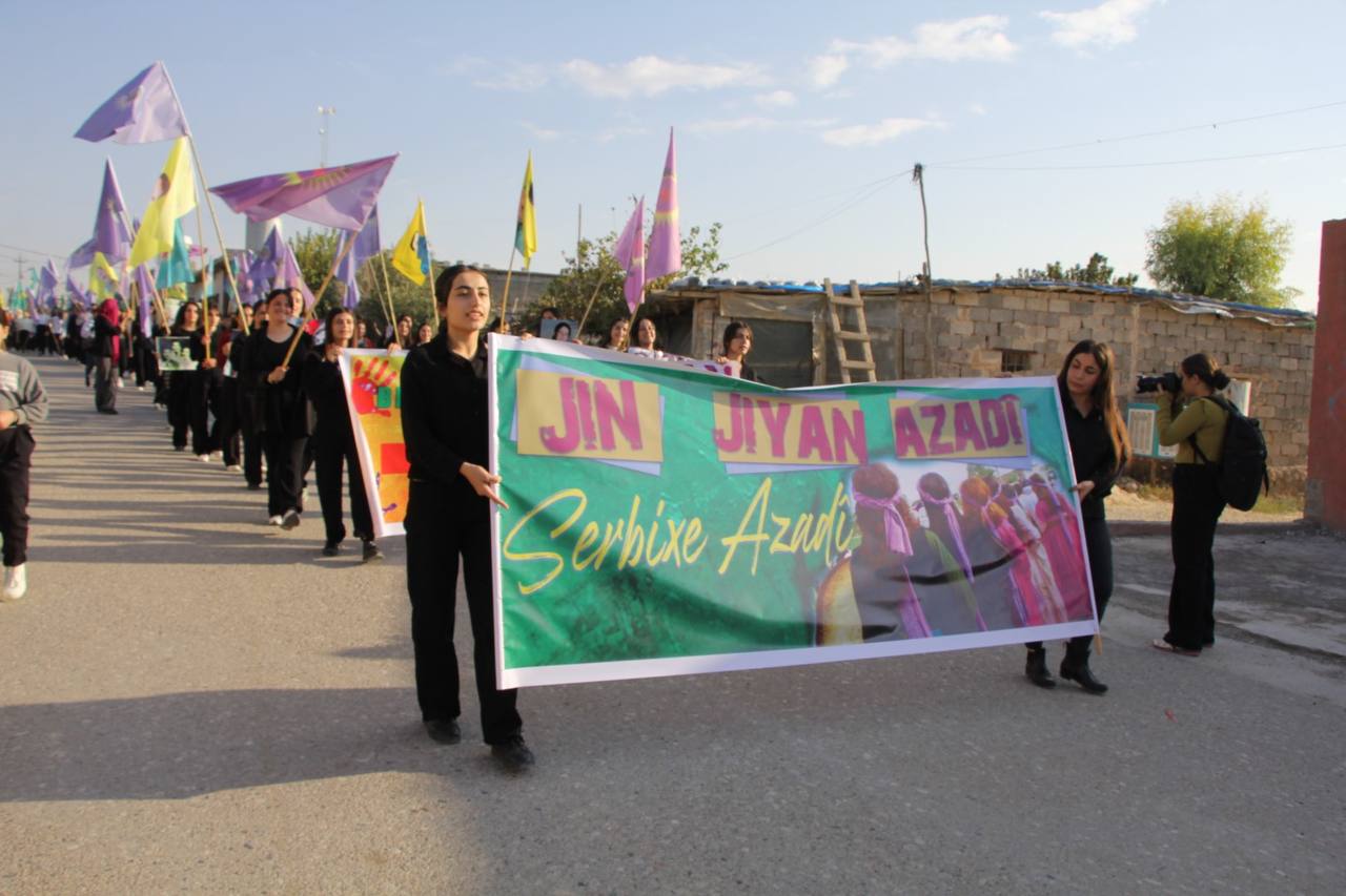 Bu yürüyüş, kadına yönelik şiddetle mücadele günü olan 25 Kasım vesilesiyle “Jin Jiyan Azadi, Serbixe Azadi” kampanyası kapsamında düzenlendi. “Özgür bir kadının duygu ve düşünceleriyle ataerkil sisteme son vereceğiz” sloganıyla Şehit Aileleri Meclisi önünde başlayan yürüyüşe yüzlerce genç kadın ve kamp kadınları katılım gösterdi.