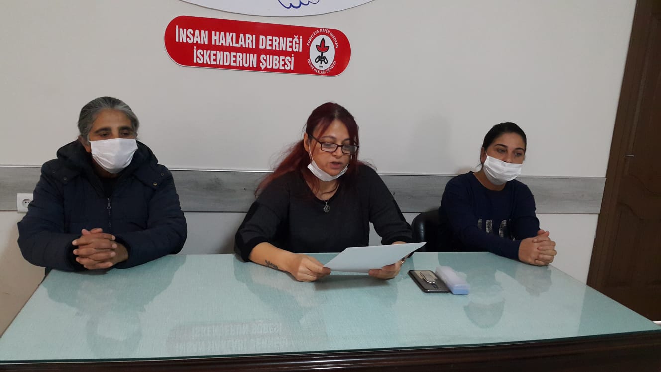 İHD İskenderun Şubesi de, 25 Kasım etkinlikleri kapsamında sendika binalarında basın açıklaması yaptı. Açıklamada konuşan İHD İskenderun Şube Başkan Yardımcısı Ayten Kılınç, 25 Kasım’ın önemine değinerek, “Kadın yönelik şiddete karşı mücadele etmeliyiz. İktidar, İstanbul Sözleşmesi’ni uygulasın. Kadına yönelik şiddete karşı en etkili yolun kadınların mücadelesi olduğunu ve bu mücadeleyi sonuna kadar sürdüreceğimizi belirtmek isteriz” dedi.