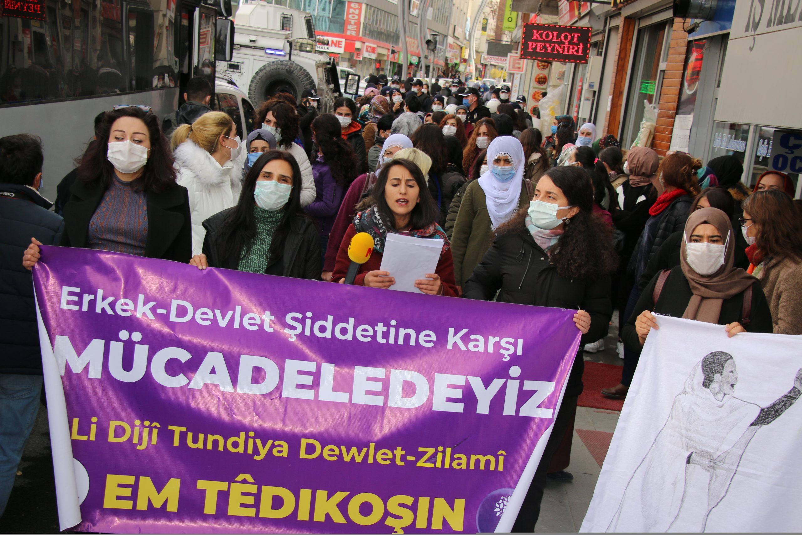 Semsûr İl Kadın Platformu, Demokrasi Parkı’nda açıklama yaptı. Açıklamada “Yasta değil isyandayız” pankartı açan kadınlar, “Jin jiyan azadî” ve “Korona değil erkek şiddeti öldürür” dövizlerinin yanı sıra, katledilen kadınların fotoğraflarını taşıdı. Basın metnini Avukat Aysu Avcı okudu.