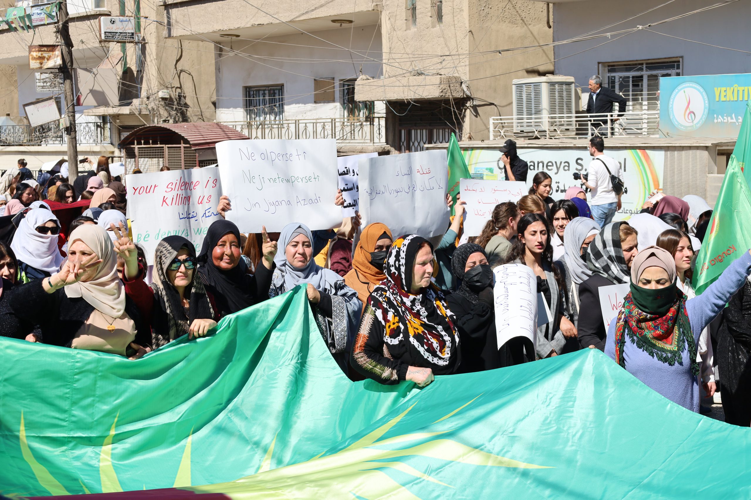 Konuşmaların ardından miting “Jin, Jiyan, Azadî” sloganlarıyla son buldu.