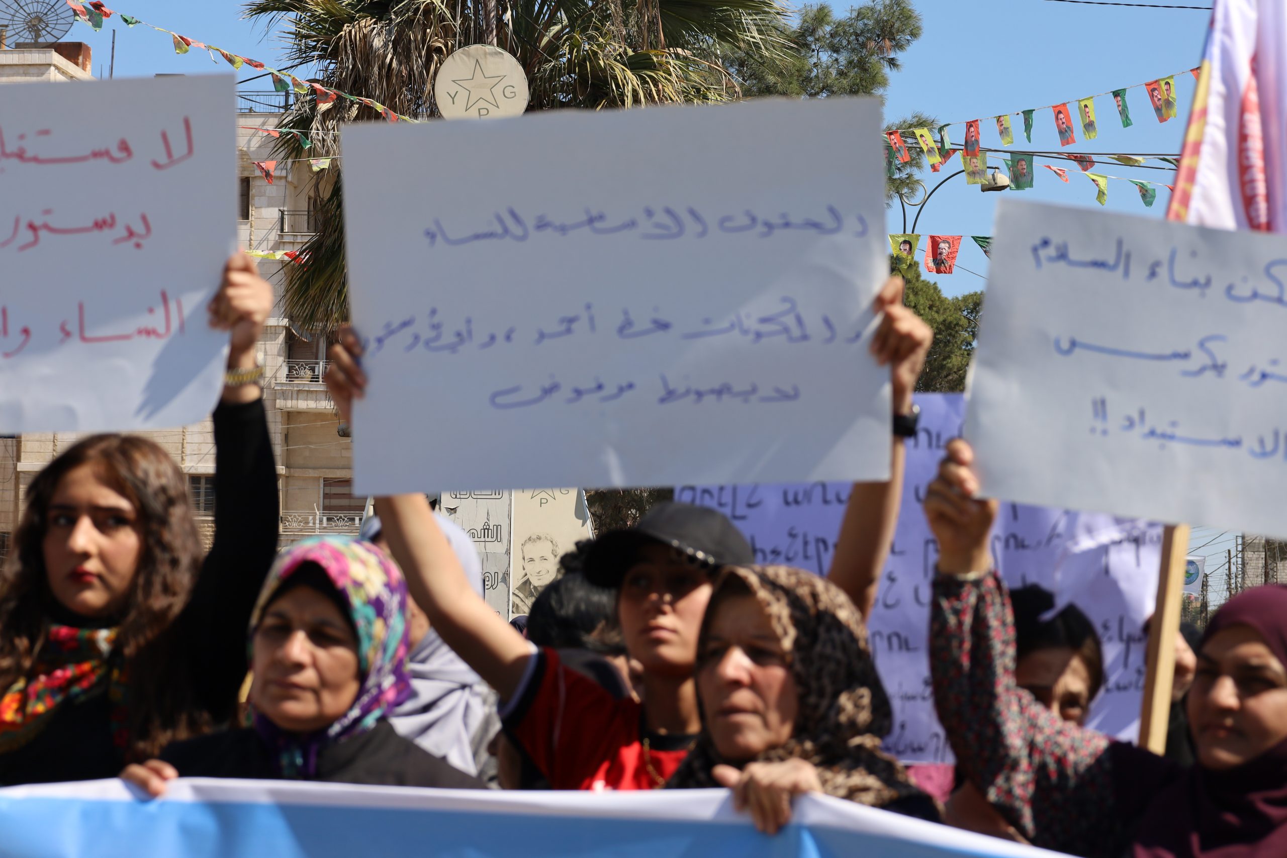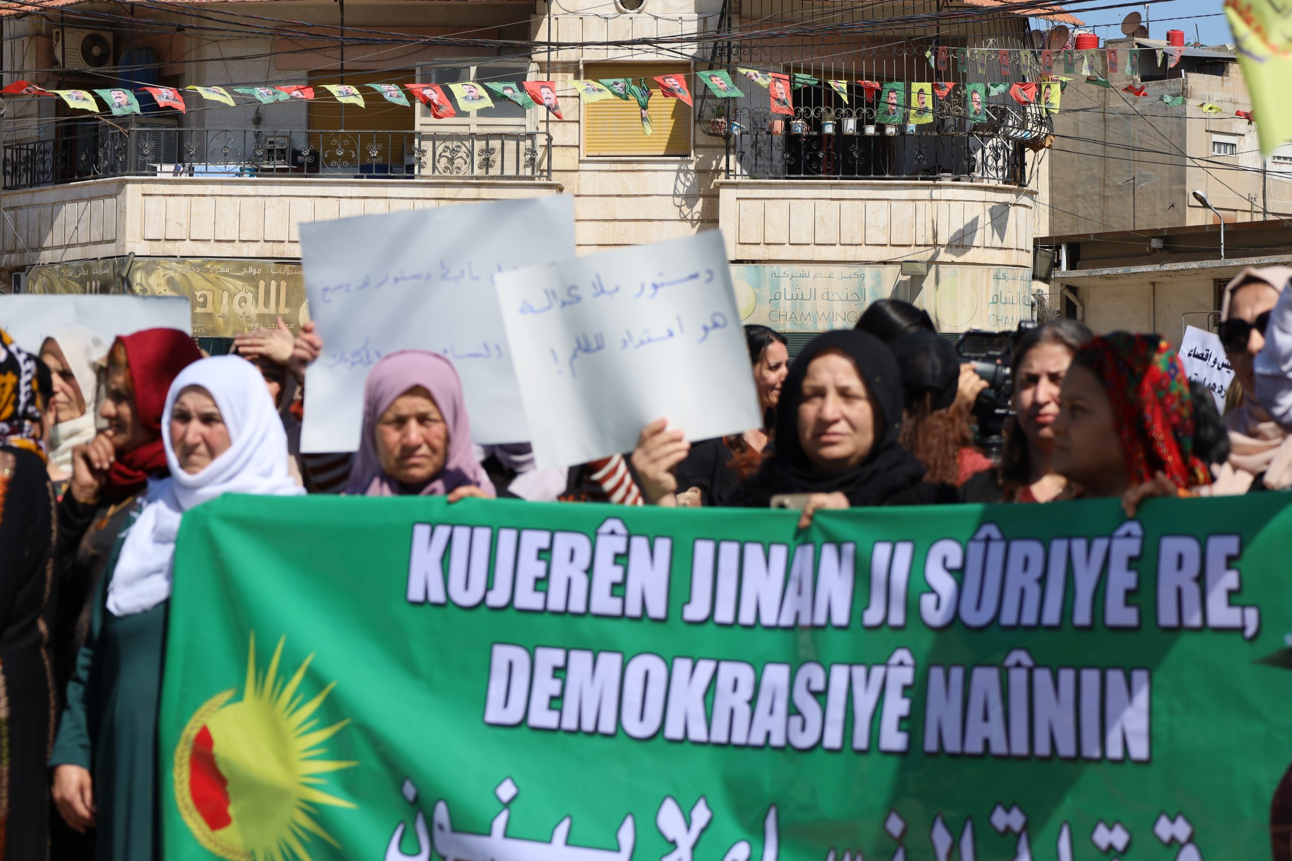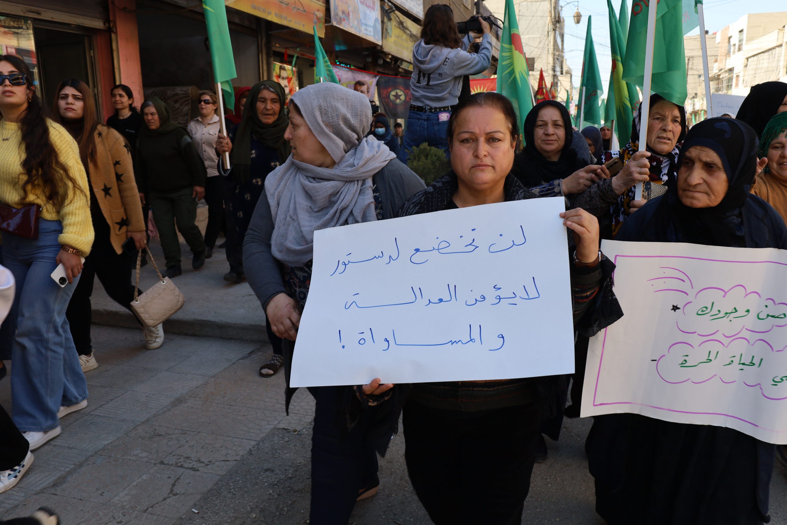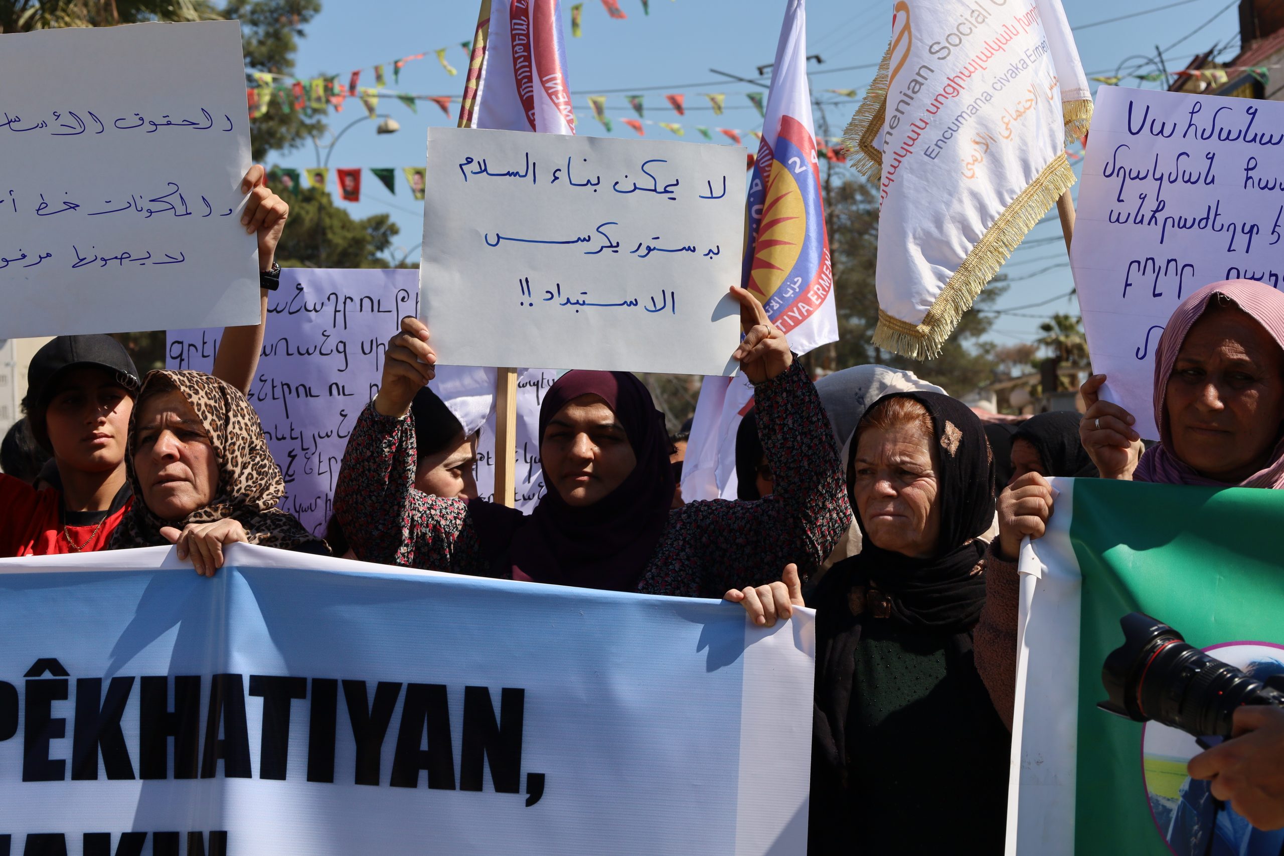 Şam iktidarının çıkardığı anayasa taslağı ve sistemin kadın iradesini yok sayan dinci ve milliyetçi zihniyetin ürünü olduğunu belirten Rîhan Loqo, “Bunlar kabul edilemez. Bizi temsil etmiyor. Her gün kendi kararlarını Suriye halklarına farz kılmak istiyorlar. Suriye halk kadınlar ve gençler öncülüğünde Baas rejimine karşı başkaldırdı. Özgürlük meydanlarındaki bu mücadele ve direniş, demokratik bir Suriye inşa edilene dek sürecek” diye konuştu.