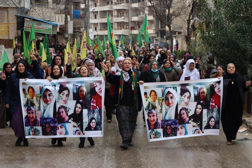 İşgalci Türk devleti ve çetelerinin Efrîn’de kadınlara yönelik yaptığı vahşi uygulamalar Qamişlo’da protesto edildi.