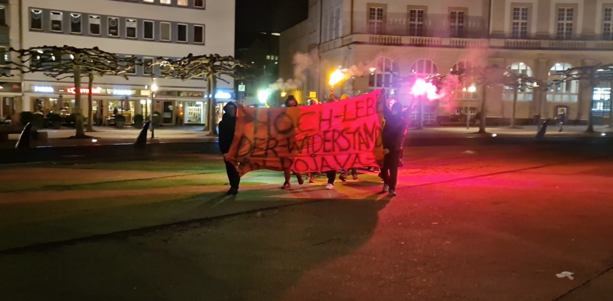 KASSEL – TCŞ (Tevgera Ciwanên Şoreşger) öncülüğünde Königsplatz meydanında biraraya gençler, pankart ve renkli sis bombaları ile Kassel üniversitesine kadar yürüyüş gerçekleştirdi.
