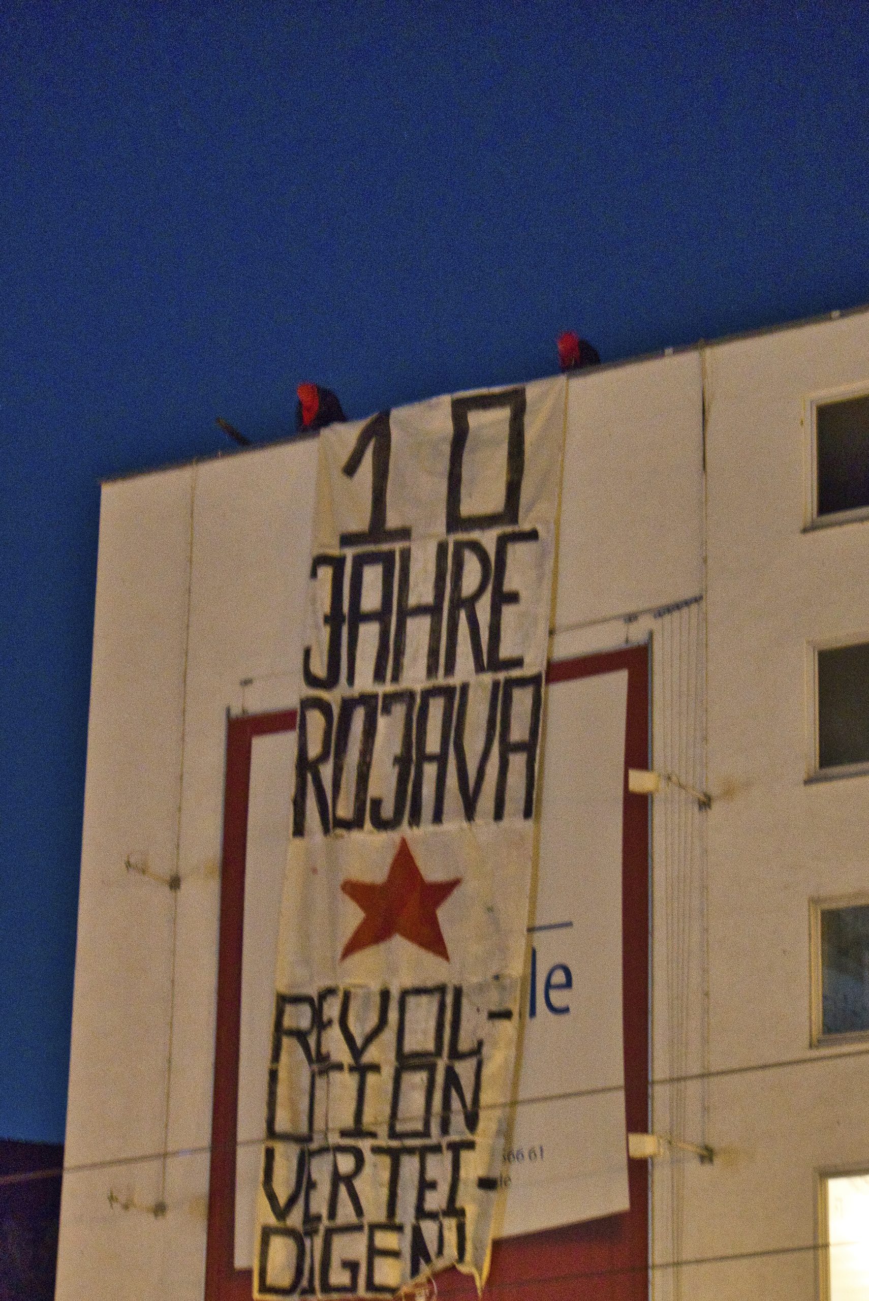 Kassel – Almanya’nın Kassel kentinde Kürt ve Enternasyonal genç aktivistler Rojava devrimi için alanlara çıktı. 19 Temmuz Devriminin 10.uncu yıldönümünü için bir dizi kutlama gerçekleştiren genç aktivistler, şehrin işlek caddeleri ve şehir merkezinde PKK bayrağı, YPG-YPJ ve Halklar önderi Önder Öcalan’ın posteri ve Almanca dayanışma mesajının olduğu dev pankartlar astılar, “Şehîd Namirin” ve “ Bijî Serok Apo” sloganları atan eylemciler;