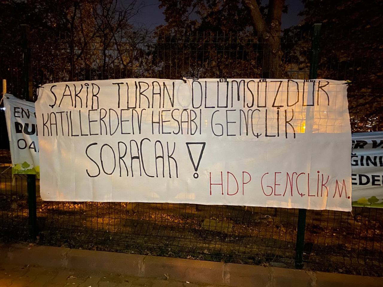 İSTANBUL- HDP Gençlik Meclisleri dün akşam AKP-MHP faşist devletinin zindanlara dönük katletme politikalarına karşı İstanbul Gaziomanpaşa’da “Şakir Turan Ölümsüzdür! Katillerden Hesabı Gençlik soracak” yazılı pankart astı.