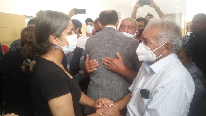KONYA – Konya’nın Meram ilçesinde ırkçı saldırı sonucu katledilenlerin cenaze törenine katılmak için Ankara’dan yola çıkan HDP Eş Genel Başkanı Mithat Sancar başkanlığındaki heyet, Konya Şehir Hastanesi’ne ulaştı. Heyet, hastane önünde bekleyen ailenin yakınlarına başsağlığı diledi. Bu sırada bir aile yakını, kendisine başsağlığı dileyen HDP Kadın Meclisi Sözcüsü Ayşe Acar Başaran’a “Ağlarsak onlar kazanır, ağlamayacağız” dedi.
