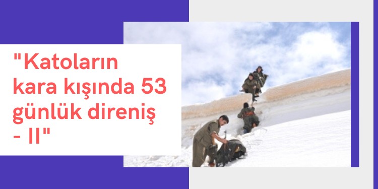 “Dışarıda hâlâ metrelerce kar vardı ve Katolar hâlâ beyaz ölüm tehdidi savuruyordu bizlere. Dışarıya çıksak bile kar ciddi bir sorundu. Arazide karsız bir yer yoktu. Bir yandan düşman bir yandan Katoların karı bizleri çembere almıştı. Ama biz buradan çıkmaya kararlıydık, ne binlerce asker ne metrelerce kar bizi engelleyebilirdi.”