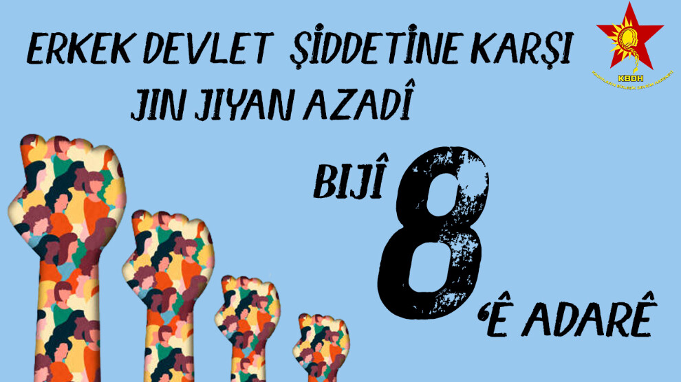 HABER MERKEZİ – KBDH Genel Konseyi, 8 Mart vesilesiyle bir deklarasyon yayınladı. Deklarasyonda, kadın isyanın büyütmeye ve faşist devleti bu isyan depreminin altında bırakmaya çağıran KBDH, erkek egemenlikli sisteme karşı “bütünlüklü bir savaş” yürüteceklerini vurguladı.
