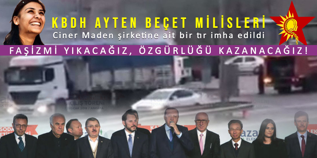 KBDH Ayten Beçet Milisleri tarafından Türkiye ve Kürdistan coğrafyasını yağmalayan, dereleri HES’lerle kurutan, boksit, kömür ocakları ile doğayı ve insanı yok eden Ciner Maden şirketine ait tır imha edildi.