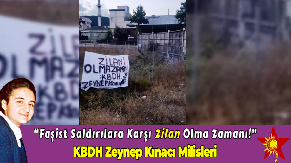 HABER MERKEZİ – Kadınların Birleşik Devrim Hareketi (KBDH) Zeynep Kınacı Milisleri, fedai eylemci Zeynep Kınacı’yı (Zilan) anma kapsamında, işgalci Türk devletinin faşist saldırılarına karşı pankart asarak, emekçi kadınlara çağrı yaptı.