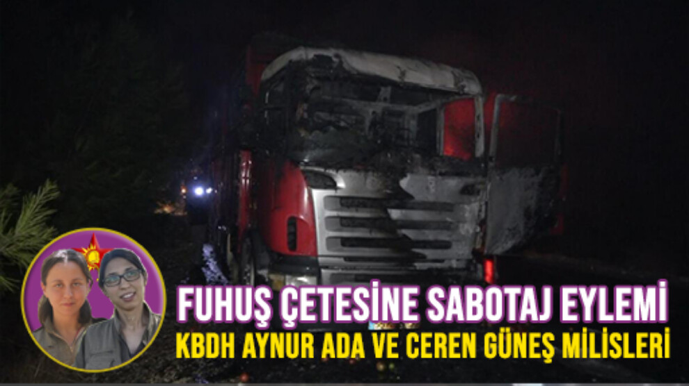 KDBH, Mersin’in Erdemli ilçesinde kadın işçileri ve çocukları fuhuşa zorlayan kişi ve kurumlarla bağlantılı bir kamyona sabotaj düzenlediğini duyurdu.