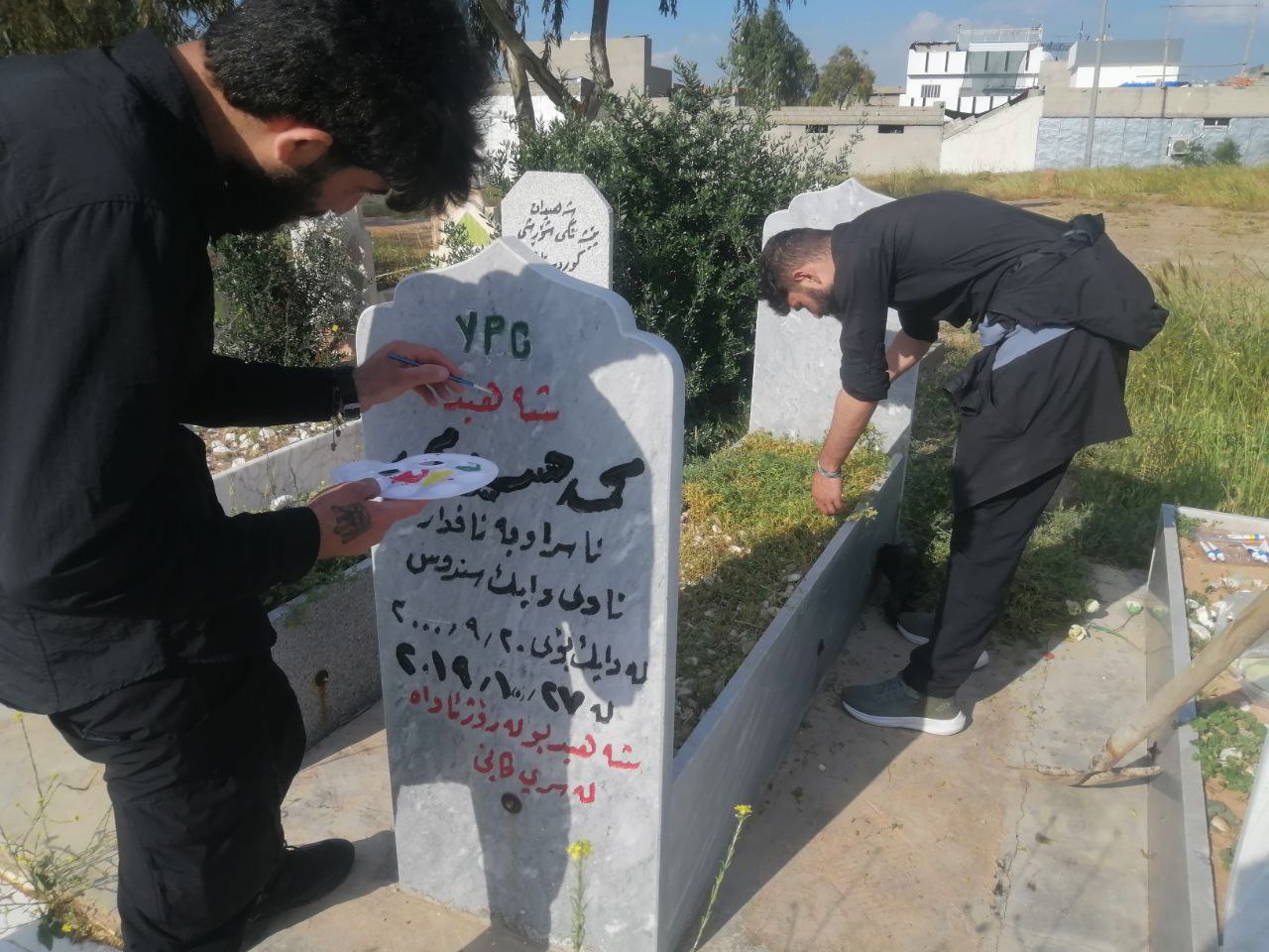 KERKÛK- Ramazan Bayramının yaklaşmasıyla birlikte Kerkük Yurtsever Gençliği, Rojava’daki savaşa katılıp fedaice mücadele ederek şehit olan şehitliklerin mezarlığını yeniledi.