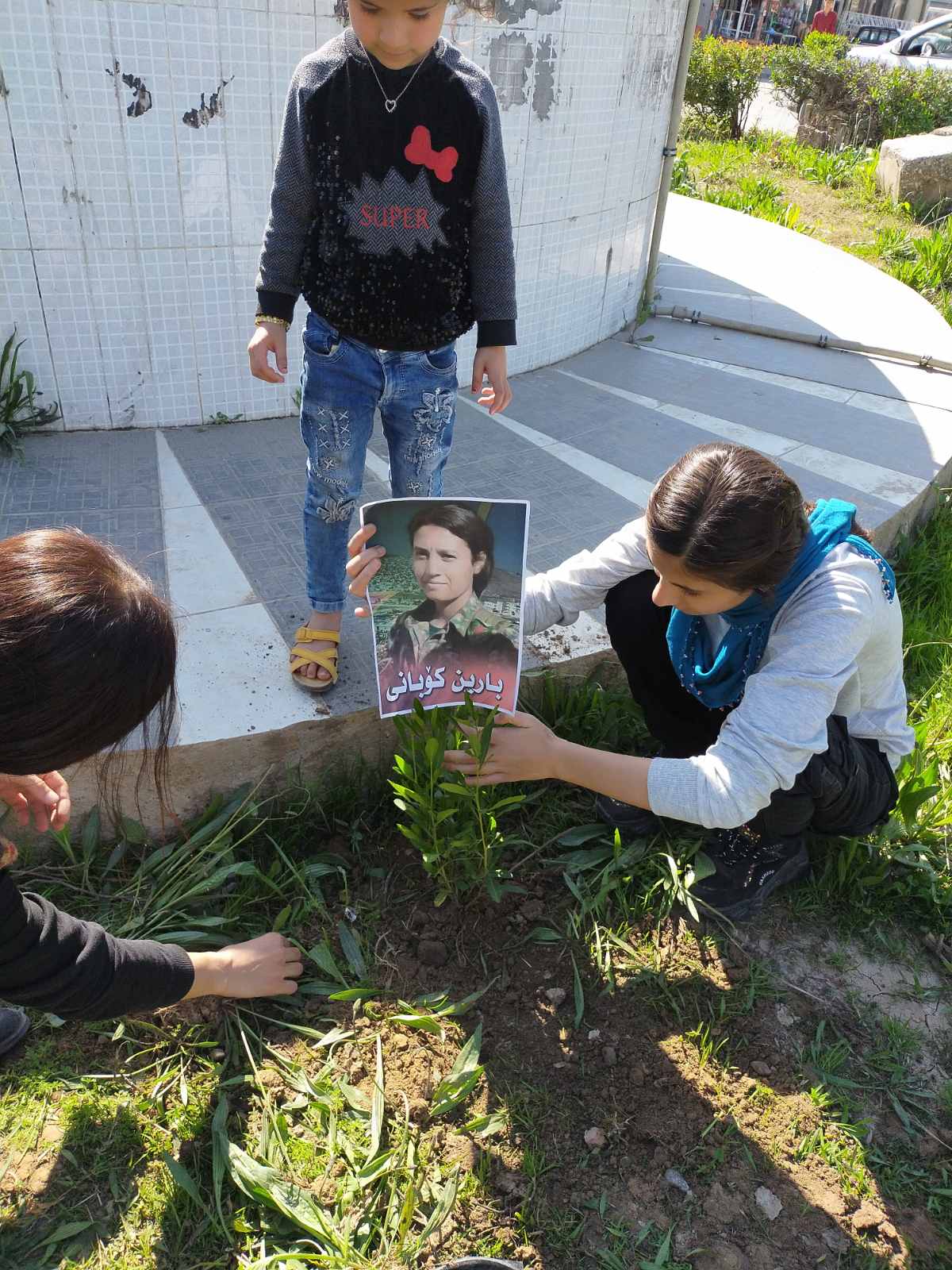 KERKÜK – Jinên Ciwanên Tekoşer (Mücadeleci Genç Kadınlar) 8 Mart Dünya Emekçi Kadınlar günü kutlamaları vesilesi ile Kerkük’de ağaç dikti. Genç Kadınlar Rahimawa Fılkeya İhvan mahallesinde buluşarak ağaç dikti ve katledilen kadınların resimlerini astı.