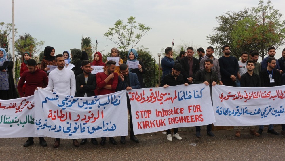 KERKÛK– İş isteyen Kerkûk’teki üniversite mezunları Nefta Bakur Şirketi’ne önünde eylem yaptı. İki saat boyunca şirket önünde bekleyen üniversite mezunları, şirketin kendilerine cevap vermemesi üzerine Nefta Bakur Şirketi’nin yetkilileriyle bir toplantı gerçekleştirdi.