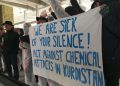 Ellerinde kimya karşı dövizler taşıyan gençler beyaz tulumlar giydi. İçeride yaklaşık 2 buçuk saat kalan gençler kimyasallarla ilgili hazırlanan dosyayı WHO yetkililerine iletmek istediler. Yeklililerin olmadığı dosyayı başvuru merkezine vermeleri gerektiğini söyleyen görevliler ile eylemciler arasında uzun süren görüşmeler yapıldı.