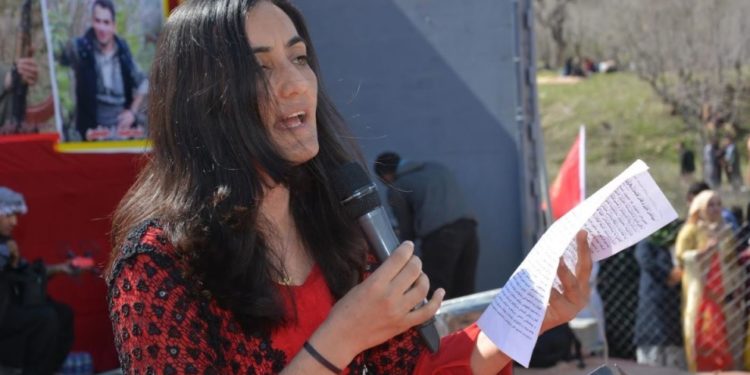 Kürt halkının ve kadınların direnişini kutlayan Evin Zilan, Leyla Güven öncülüğünde başlatılan açlık grevi eylemlerine dikkat çekerek, “Kadınlar öncülüğünde ve Amed zindanlarındaki direniş ruhuyla bugün büyük bir direniş sergileniyor. Germiyan’da Leyla Qasim’lerin direniş ruhuyla ve Herêm Mehmud, Şeyma Ednan ve Gulebax Celal öncülüğünde direniş devam ediyor. Açlık grevine katılarak mücadeleyi büyüttüler” ifadelerini kullandı.