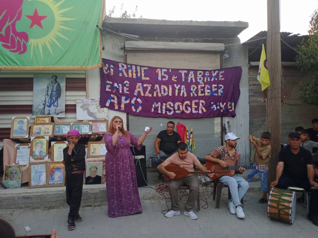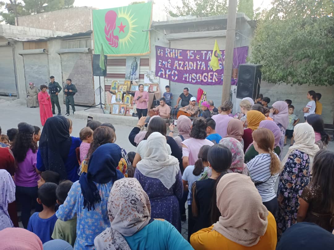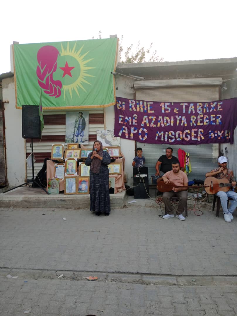 Devrim şehitleri anısına bir dakikalık saygı duruşuyla başlayan etkinlik Genç Kadınlar Birliği üyesi Leyla Mihamed’in günün anlam ve önemine dönük yaptığı kısa bir konuşma ile devam etti. Mihamed Kürt halkının diriliş bayramı olan 15 Ağustos Bayramını başta şehitlere ve Önder APO’ya olmak üzere tüm Kürt halkına kutladıklarını belirtti.