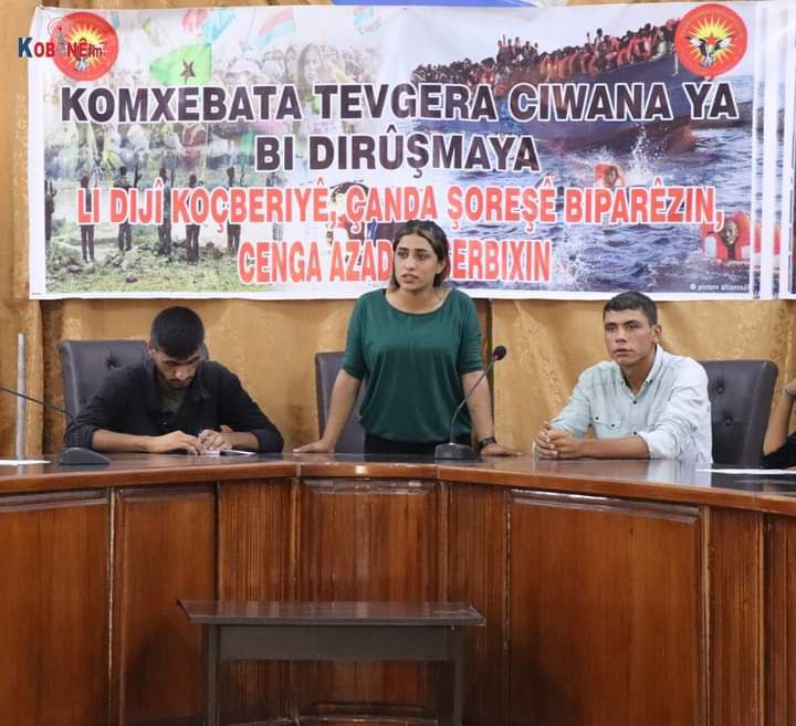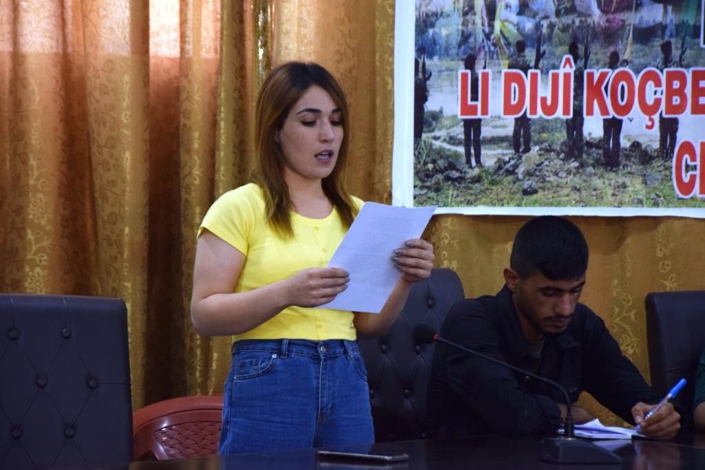 Daha sonra Fırat Bölgesi Gençlik ve Spor Meclisi Eşbaşkanı Avaşin Misto, gençlerin mülteci tehlikelerine karşı yaşadıkları sorunlara ilişkin hazırlanan raporu okudu.