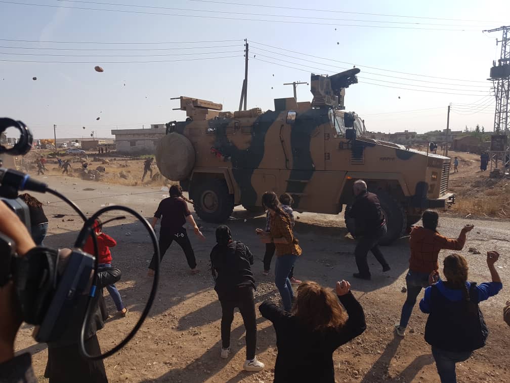 Kobanêliler, bölgede ortak devriye turu atan Rus askeri polis güçleri ile işgalci Türk ordusunu çürük meyve, yumurta ve ayakkabı fırlatarak kovaladı.