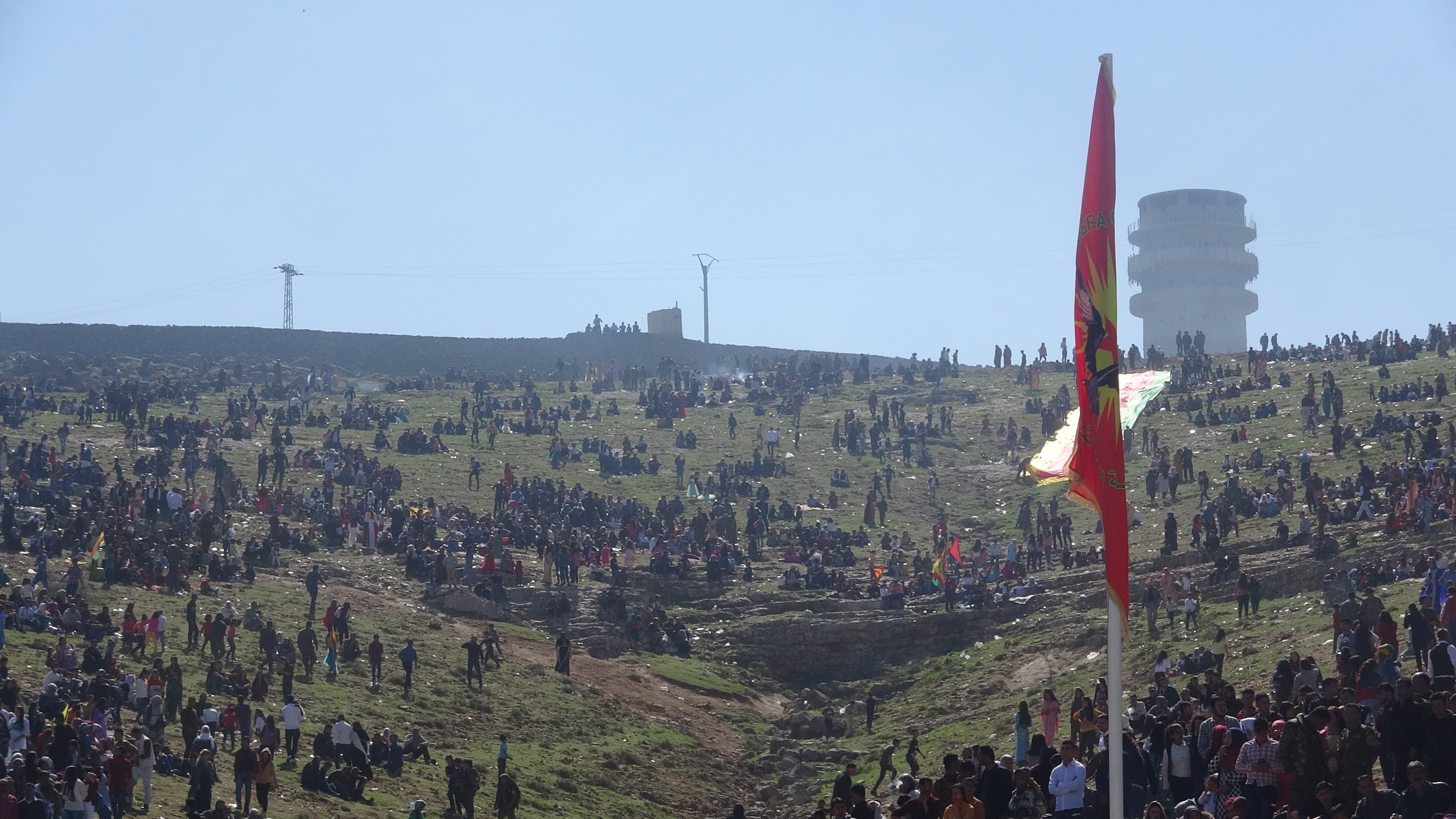 KOBANÊ – Kobanê’de on binlerce kişi Miştenur Tepesi’nde Newroz Bayramı’nı kutladı. Yapılan konuşmalarda Halklar Önderi Abdullah Öcalan üzerindeki tecridin talebiyle devam eden açlık grevi direnişleri selamlanarak, tecridin son bulması için mücadeleyi yükseltme çağrısı yapıldı. Konuşmalarda DAİŞ çetelerinin yenilgisinin Kobanê direnişiyle başladığı ve şimdi de Derazor’da sona yaklaştığı belirtildi.