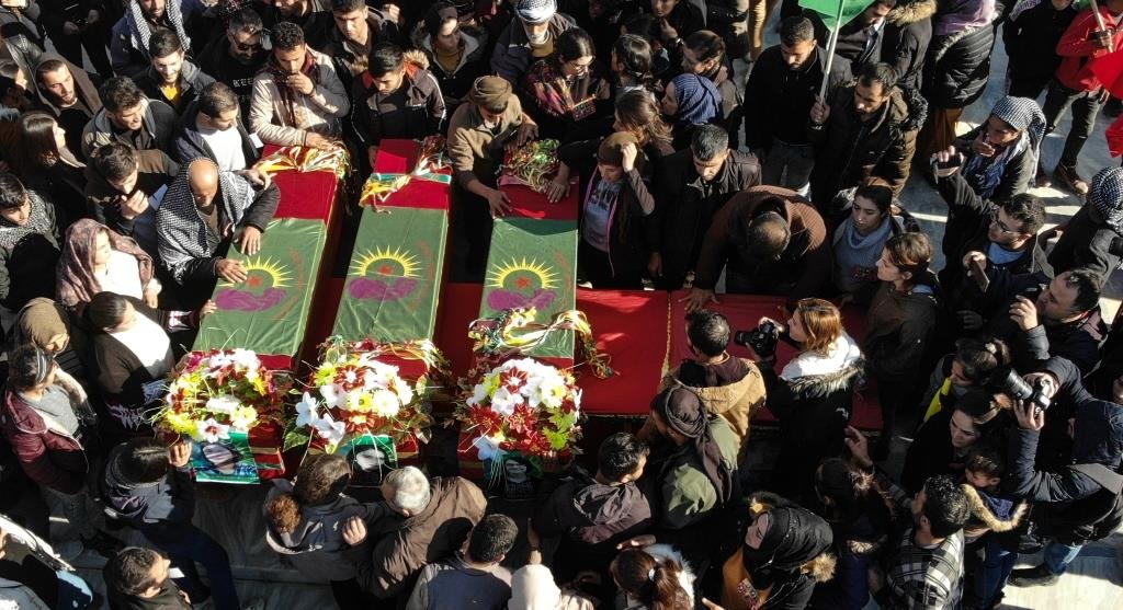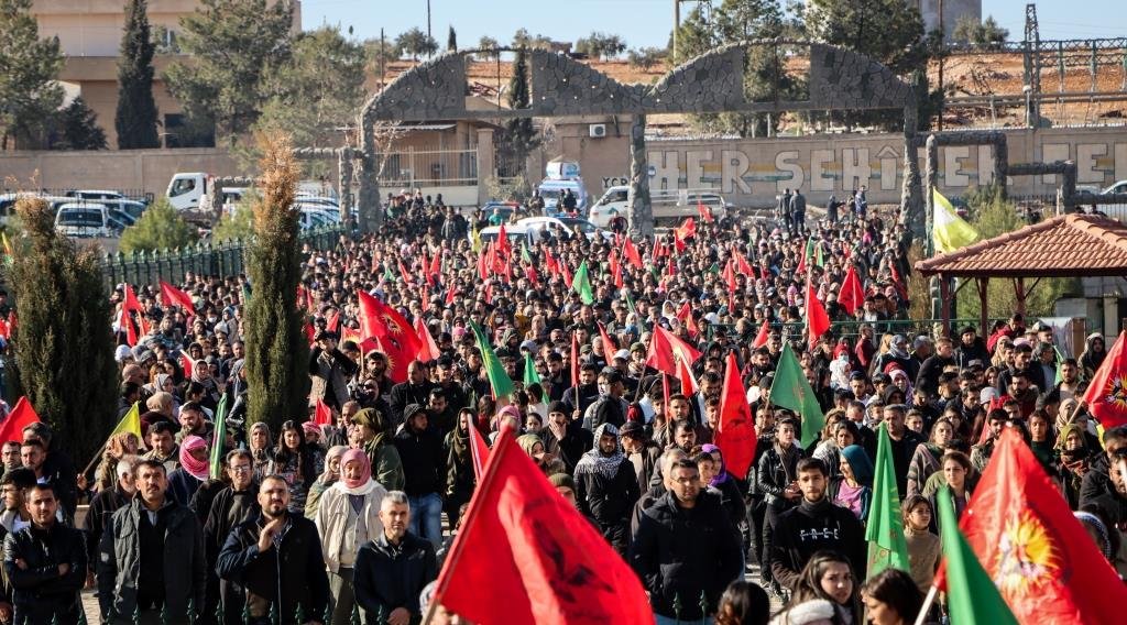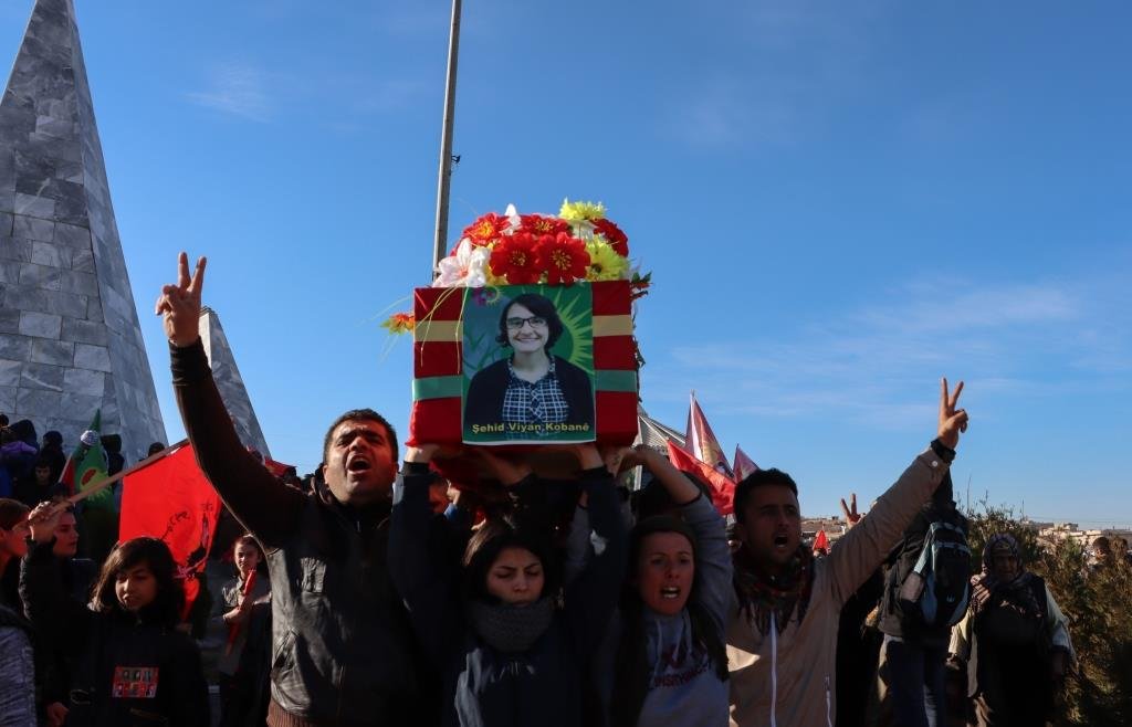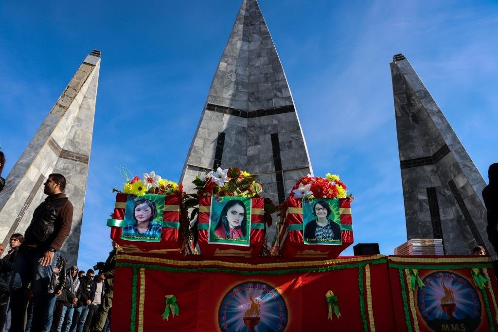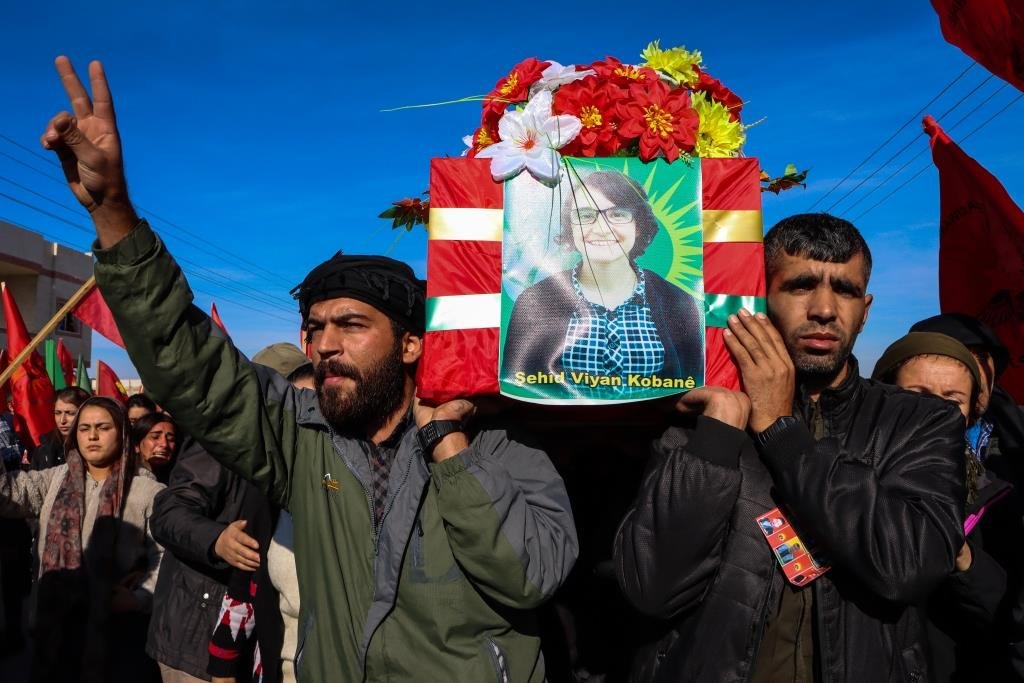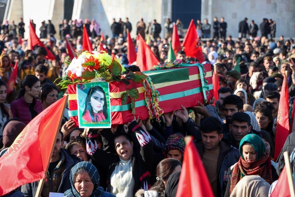 KOBANÊ – Kobanê’de binlerce kişi Türk devletinin SİHA saldırısı sonucu şehit ettiği Nûjiyan Ocalan, Viyan Kobanê ve Rojîn Ehmed Îsa’yı son yolculuğuna uğurlamak için Şehit Dicle Şehitliği’ne akın etti. Uğurlama törenine sivil toplum kuruluşu temsilcileri, siyasi partiler ve Fırat bölgesinden binler katıldı.