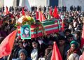 Törenin sonunda şehitlerin cenazeleri sloganlar eşliğinde toprağa verildi.