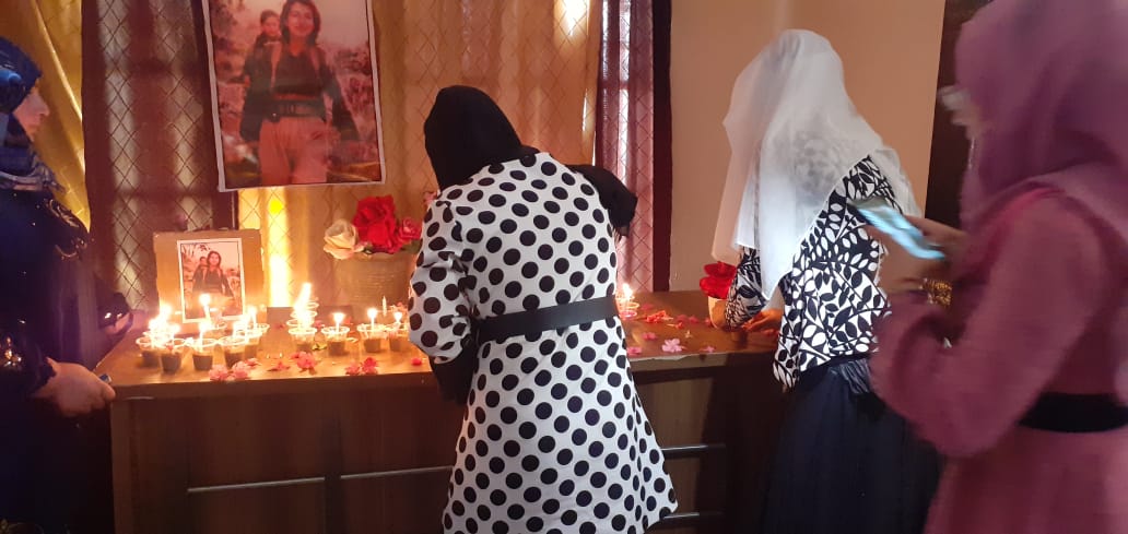 Yine Derazor’da Genç Kadın Birliği ve Zenebûya Kadın Hareketi öncülüğünde Şehit Beritan şehadet yıldönümü için bir araya gelindi. Anmada şehitler için mum yakılırken, şehitler gerçeği ve şehit Beritan’ın yaşam mücadelesine dönük konuşma gerçekleştirildi.