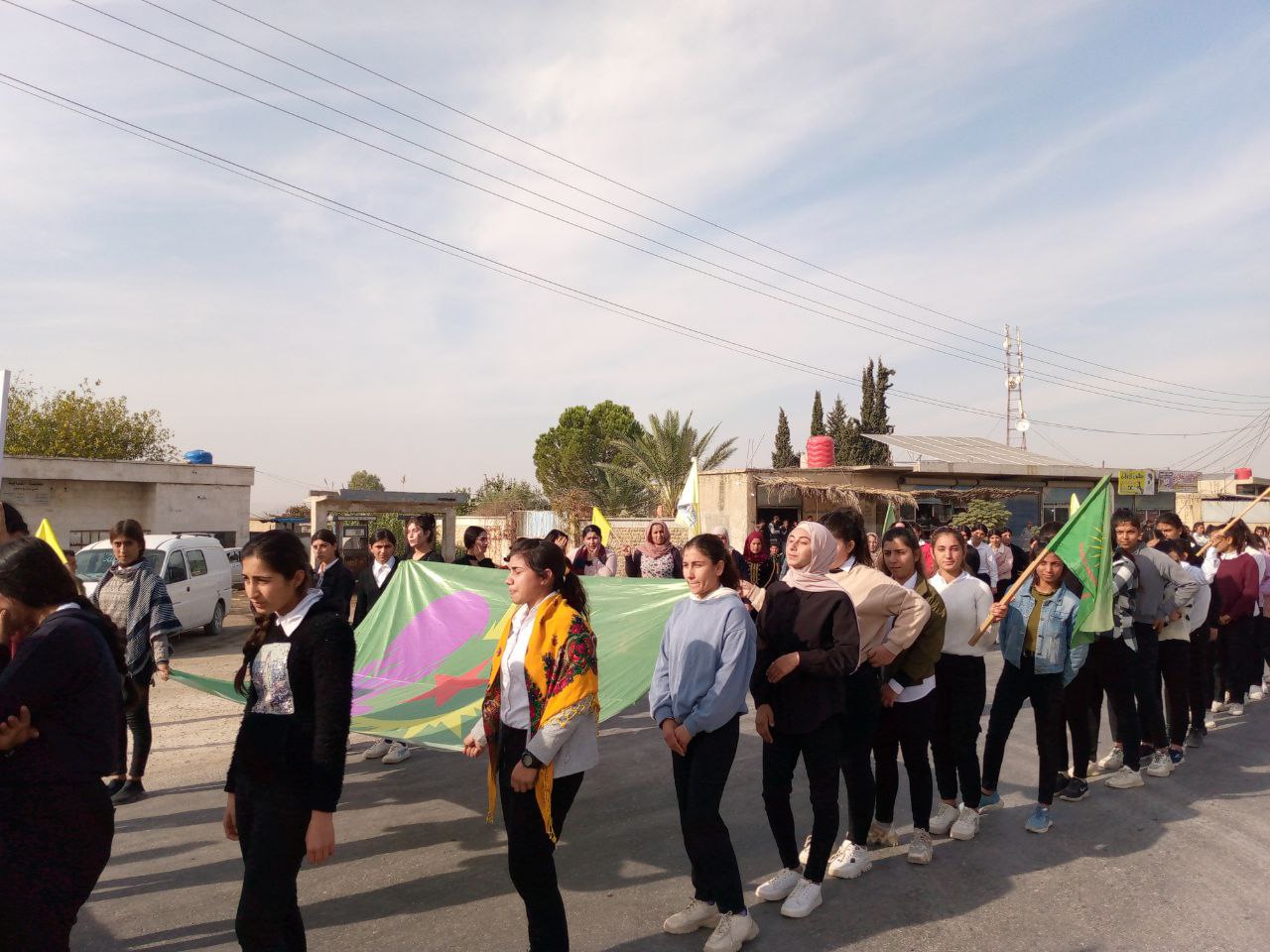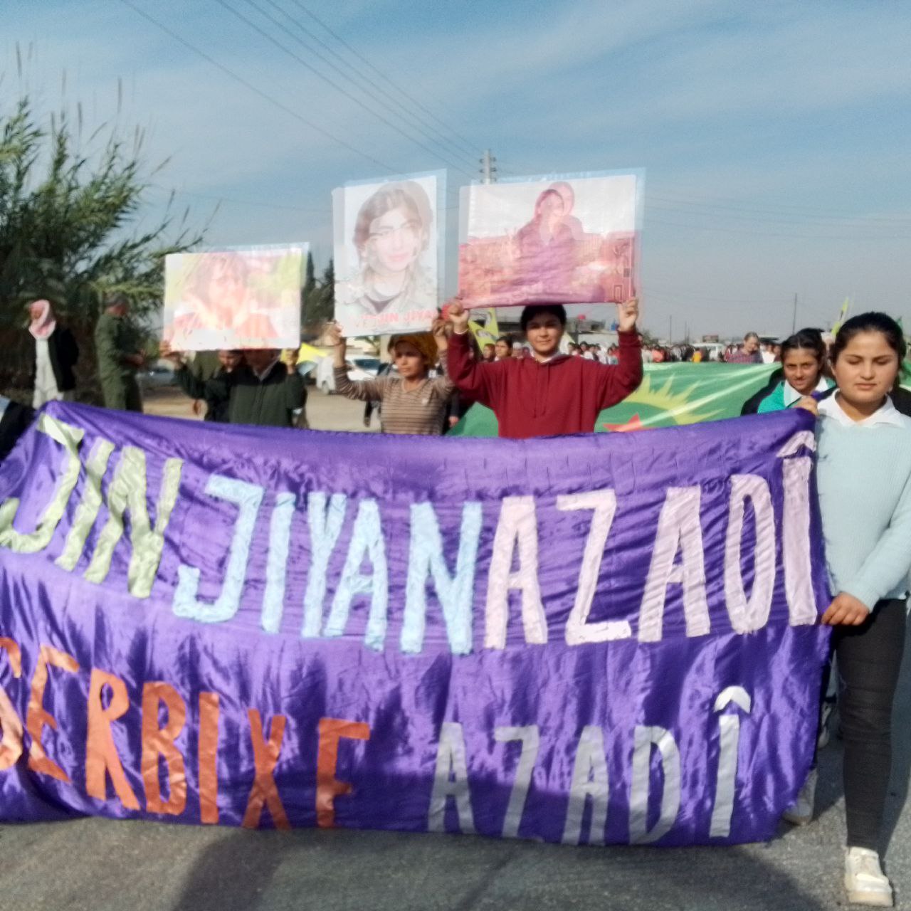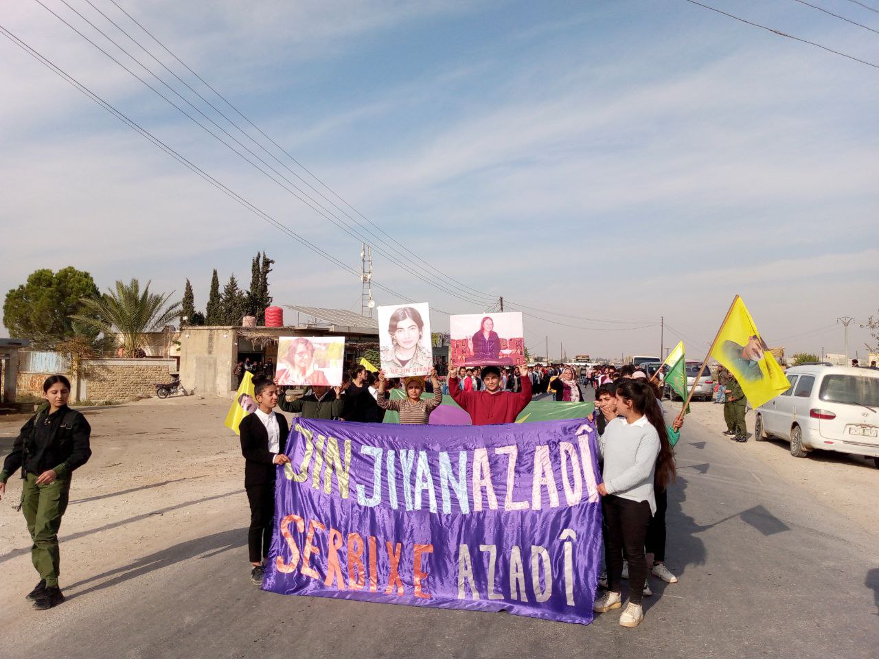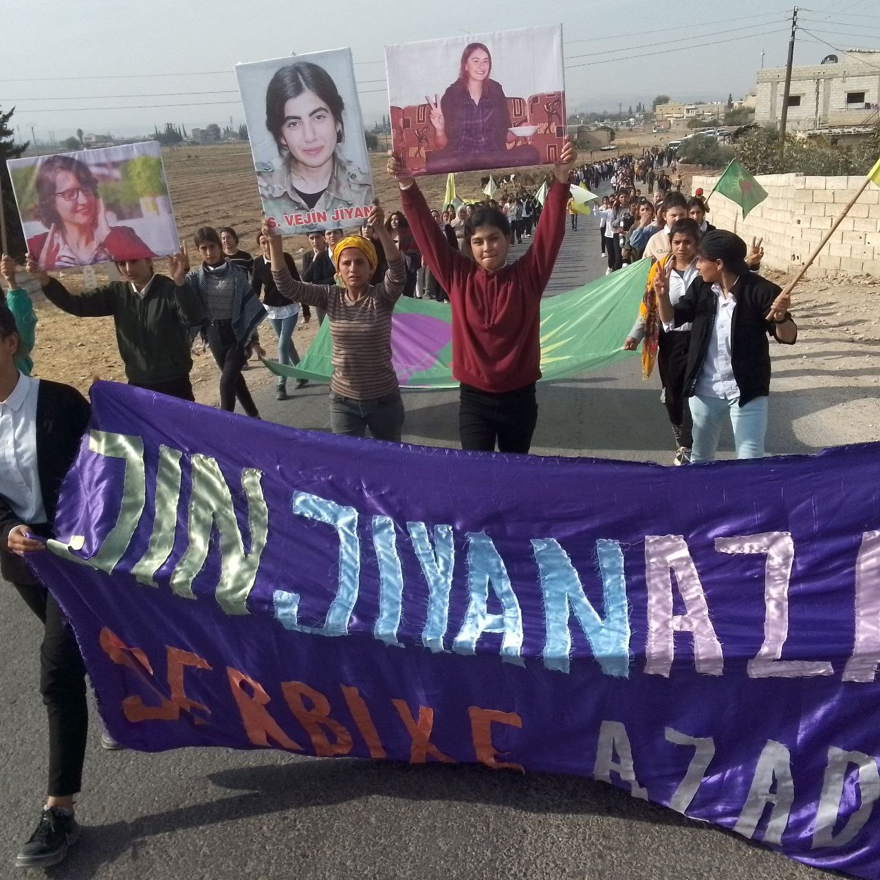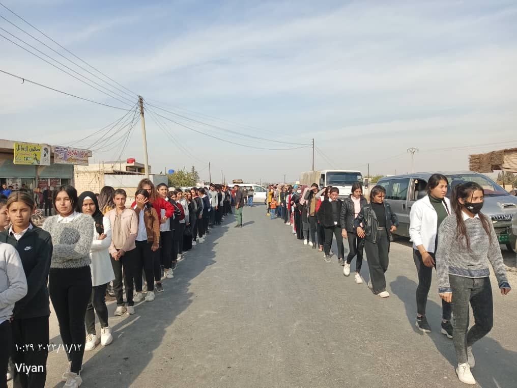 Yapılan saldırılardan sonra Derîk, Kobanê, Minbic, Reqka, Derazor’da ve bir çok farklı noktada saldırıya karşı yürüyüşler ve basın açıklamaları gerçekleşmişti. Bu temelde bugün de Kobanê Yekitiya Jinên Ciwan tarafından yapılan saldırıyı kınamak amaçlı Kobanê’nin Qene ilçesinde kitlesel bir yürüyüş düzenlendi. Yürüyüşe çok sayıda genç kadın ve Kobanê halkı katıldı. Yürüyüşte “Jin Jiyan Azadî Serbixe Azadî pankartı taşınırken sıkça “Biji Berxweda Ciwana” “Biji Berxwedan İmrali” sloganları atıldı.