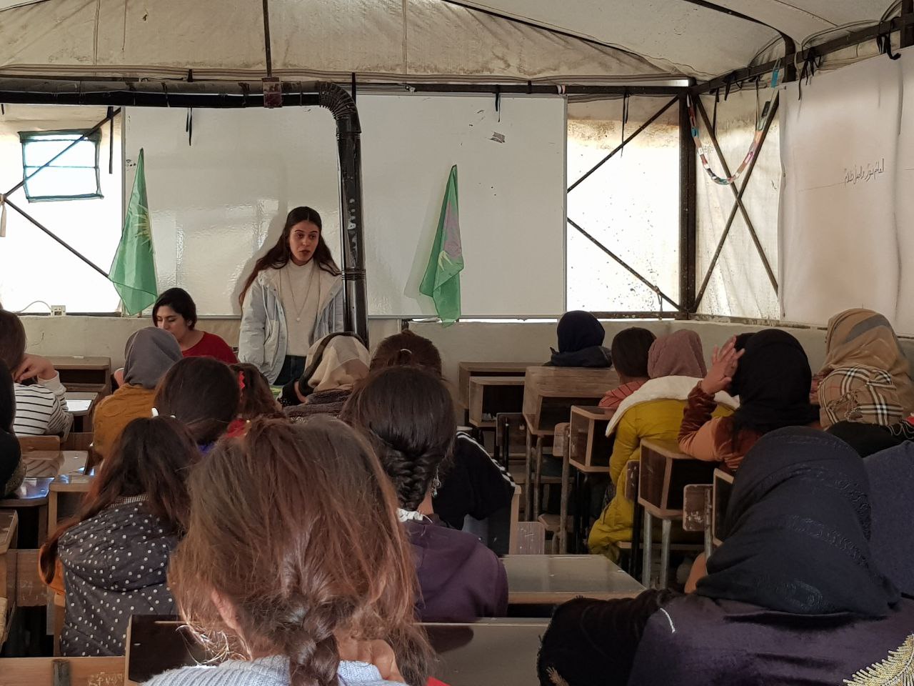 KOBANÊ- Bugün Genç Kadınlar Birliği tarafından Kobanê’nin Girêspiyê ilçesinde bağlı Tilsemen kampında bir toplantı düzenlendi. Toplantı Önder Apo’nun fiziki özgürlüğü için başlatılmış olan Önder Apo’ya özgürlük Kürt sorununa çözüm hamlesi çerçevesinde gerçekleştirildi. Onlarca genç kadının katıldığı toplantıya başlamadan önce tüm şehitler anısına bir dakikalık saygı duruşunda bulunuldu. Toplantı genç kadın üyeleri Neda Şahî ve Nadya Axsi tarafından yürütüldü.