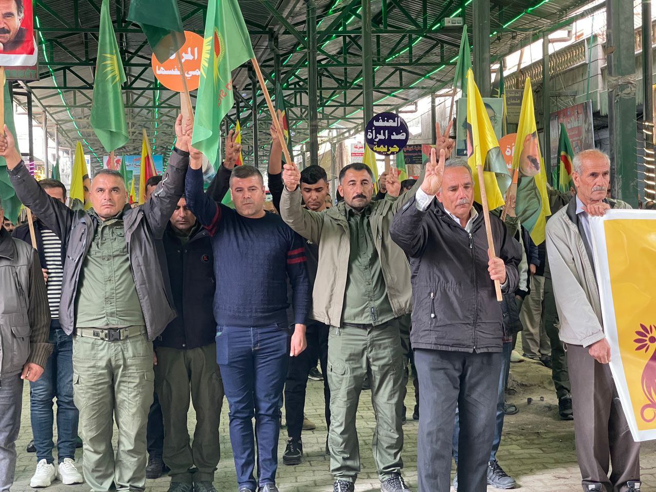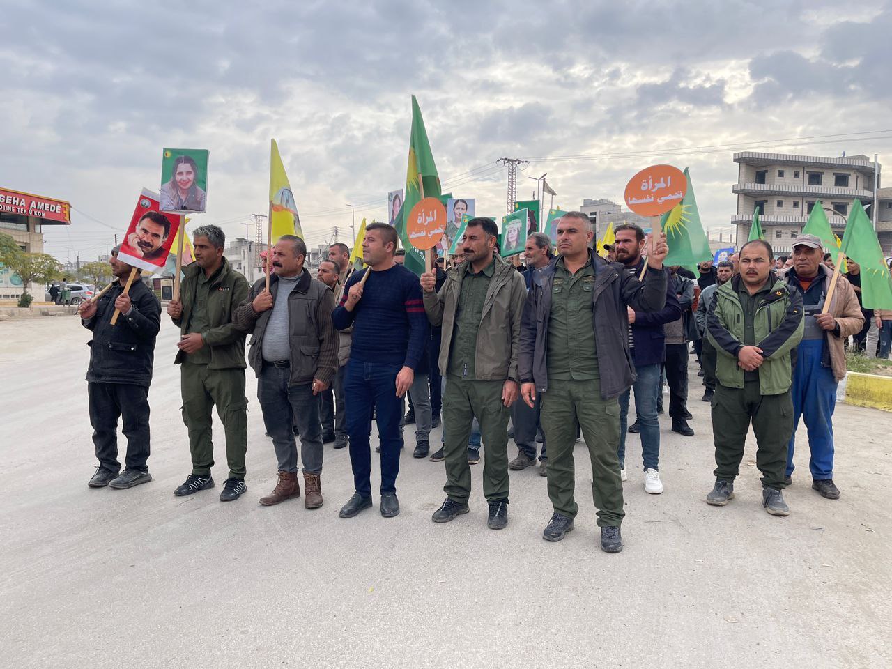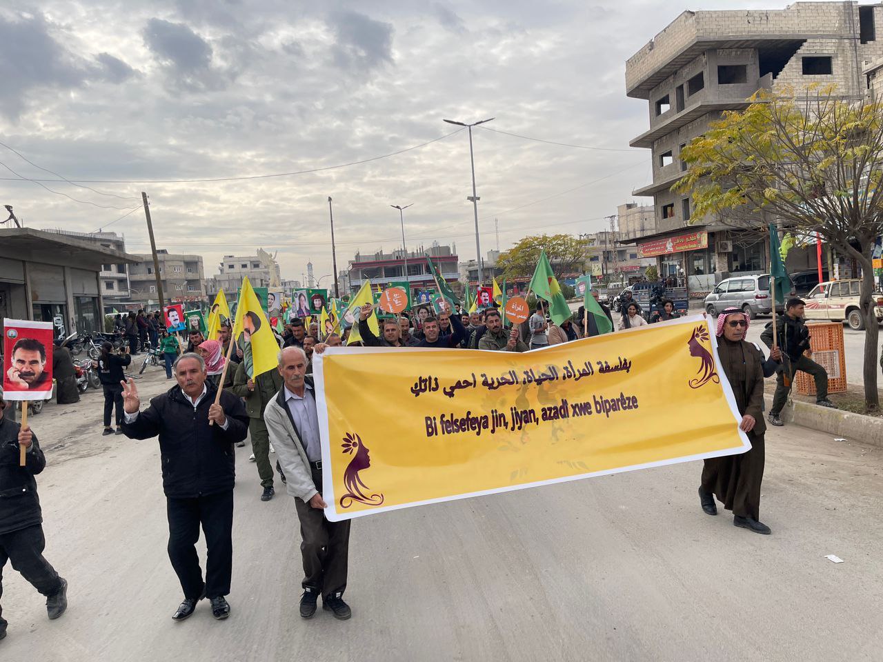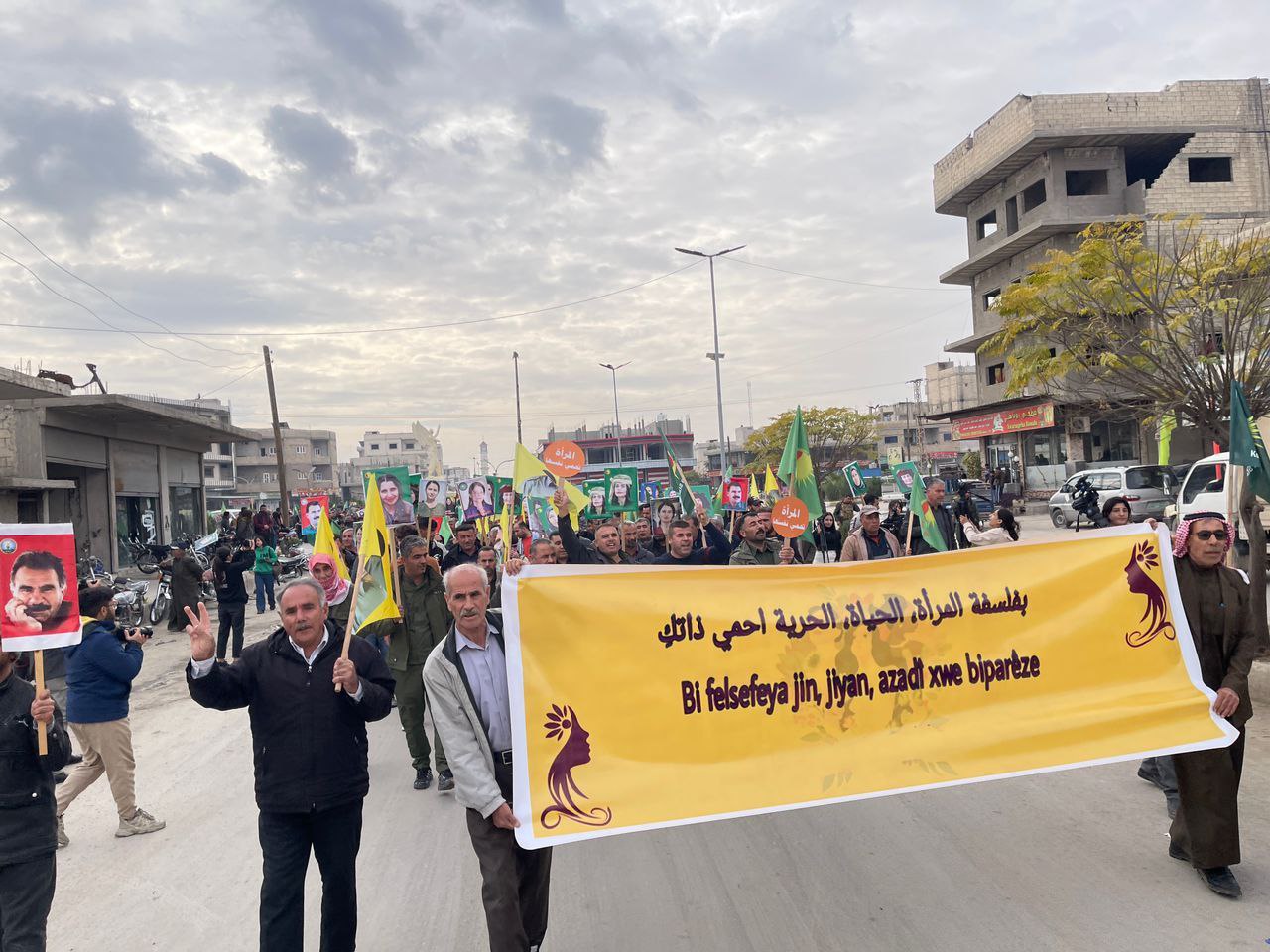 Fırat kantonunda erkekler Kobanê’deki Özgür Kadın Meydanı’nda toplanarak Barış Meydanı’na doğru yürüdü.