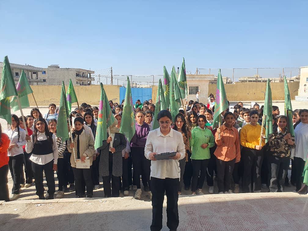 Halepçe Katliamı’nın 37. yıldönümünün yaklaşırken Kobanê’li genç kadın öğrenciler bir açıklama yaparak Halepçe şehitlerini andı.