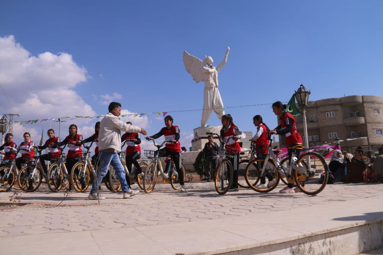 10 yarışmacının katıldığı bisiklet yarışması Sarya Özgür Sokağı’ndan, Özgür Kadın Meydanı’na kadar sürdü. Bisiklet süren genç kadınlar arasında birinci olan Tilînaz Elî’ye ödül verildi.