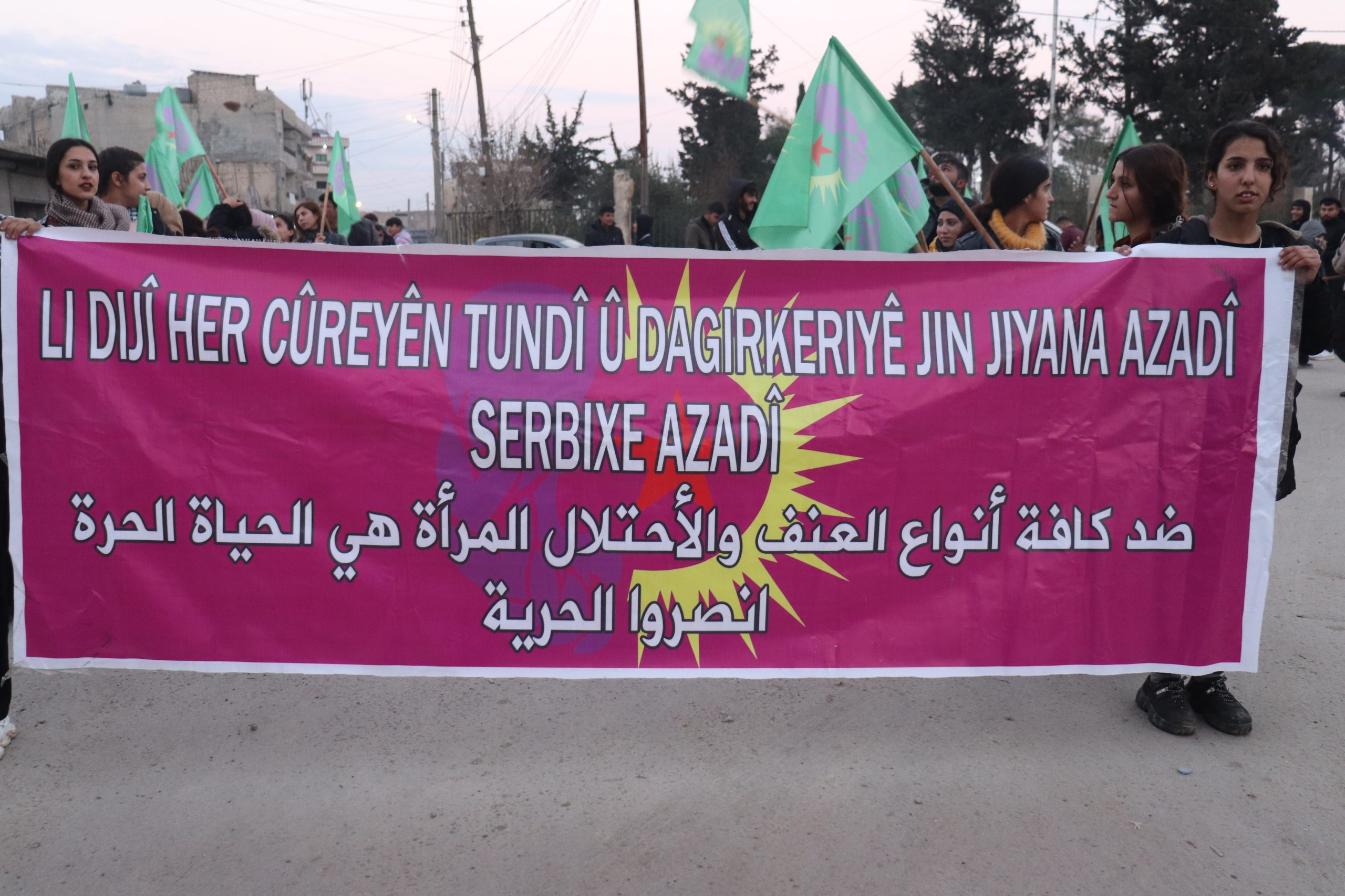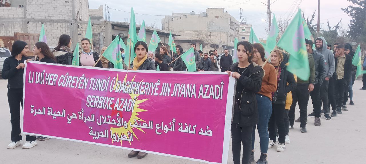 Genç Kadınların yürüyüşü, “Yaşasın gerilla direnişi” ve “Bijî Serok Apo” sloganlarıyla sona erdi.