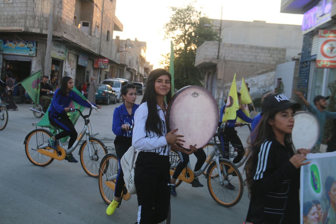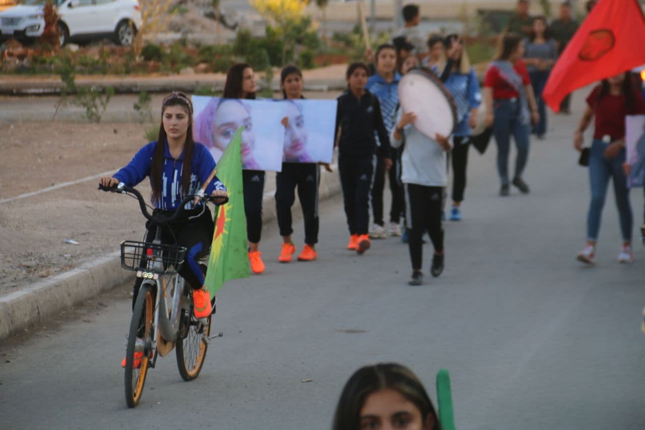 KOBANÊ – Kobanê kantonunda Yekîtîye Jinên Ciwan, sloganıyla, kadına yönelik şiddetle mücadele kapsamında bisikletli yürüyüş gerçekleştirdi. Yürüyüş kadın üzerindeki şiddete karşı ve “Ji bo Tola Salan Têkbibin Dagirkeran” kampanyası çerçevesinde gerçekleştirildi.