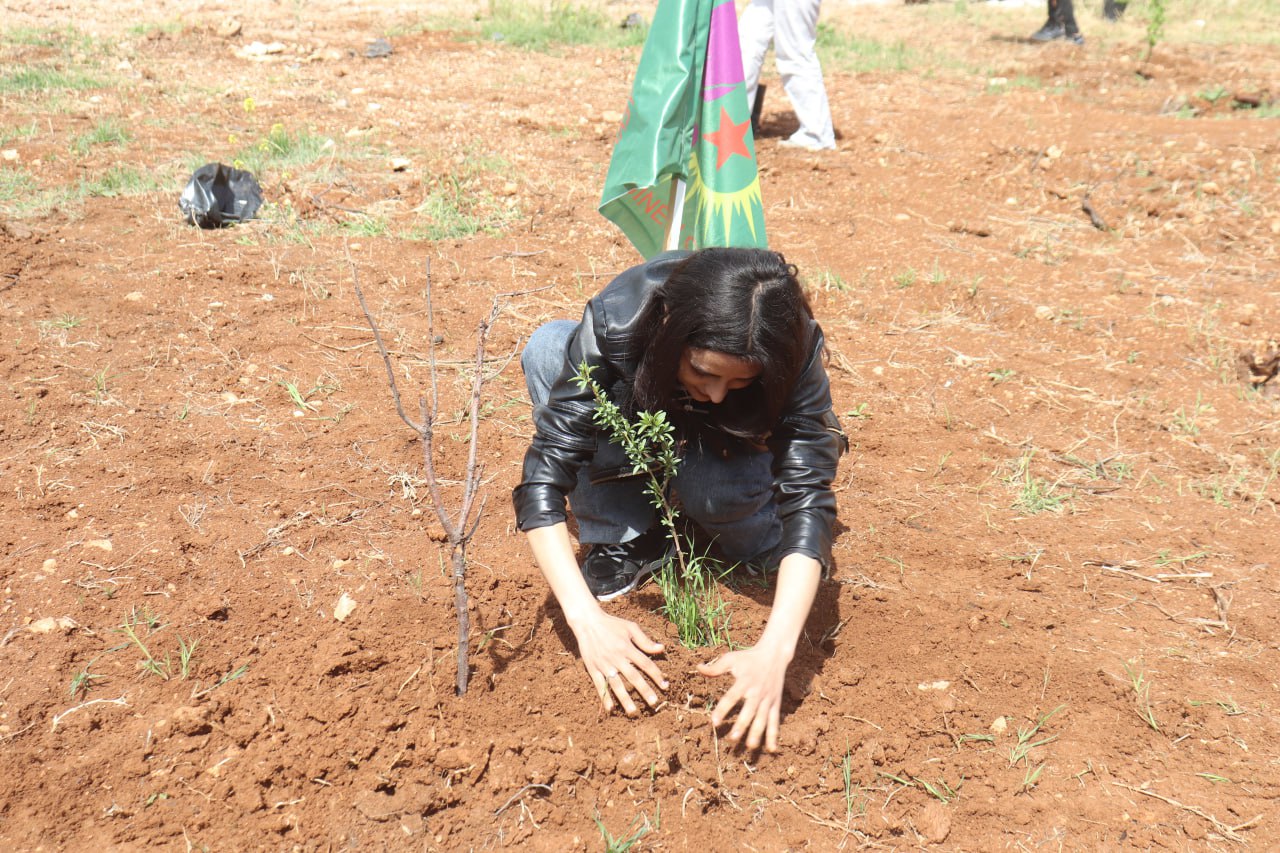 Dikilen her ağacın doğa ve toplum için olduğunu belirten genç kadın, ” 4 Nisan ruhuyla her tarafı rengarenk çiçekler ve ağaçlarla donatalım. Burada Önderliğimiz için diktiğimiz her ağaca bir şehit arkadaşın ismini verdik. Çünkü bu değerlerimiz şehitlerimizin değerleridir. Çünkü bu topraklar şehitlerimizin kanıyla sulanmıştır.” dedi.