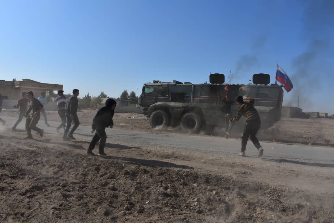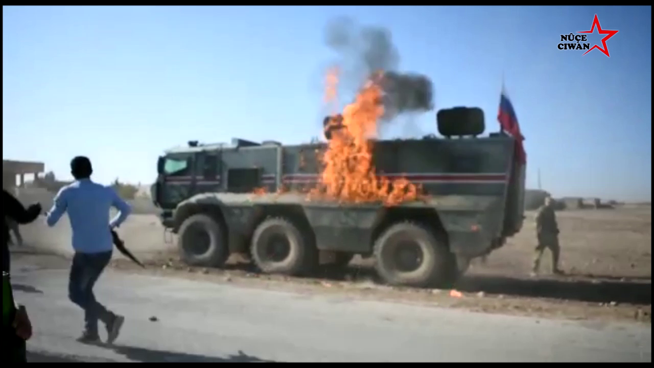 Kobanê'nin doğusunda devriye atan işgalci Türk devleti ve Rus asker polisi molotof ve taşlarla karşılandı.