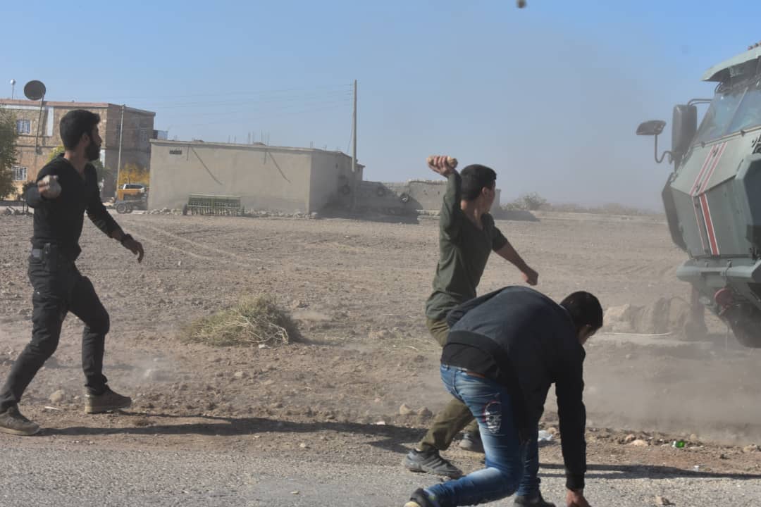 Muhabirlerimiz, Şeranê köyü çıkışında Kobanê halkı ve gençliğinin işgalcileri taşlarlar karşıladı. İşgalci Türk askerinin halka göz yaşartıcı gaz ve 3 sivil araca çarpmasından sonra gençler molotoflarla işgalcileri kovaladı. İşgalcilerin saldırısında 1 yurttaş yaralandı.