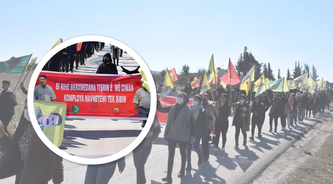 Yürüyüşte sık sık “Bijî Serok APO” ve “Be Serok jiyan nabe” gibi sloganlar atıldı.