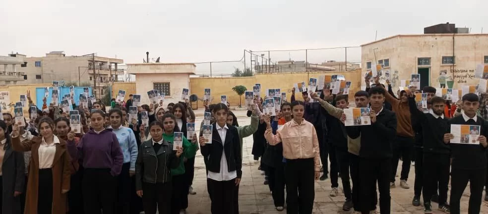 KOBANE – Kobane’de Yurtsever Öğrenciler Birliği broşür çalışması yürüttüler. Dağıtılan broşürlerde, Önder APO’nun fiziki özgürlüğü talebi ve öğrencilerin Önderr APO’nun özgürlüğü için eylemsellik geliştirmesinin önemi vurgulandı. Yüzlerce broşür Kobane’deki bir okulda dağıtıldı.