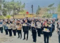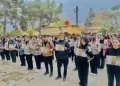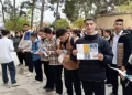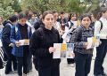 Öğrenciler büyük bir moralle okul bahçesinde bir araya gelerek broşürleri aldılar.