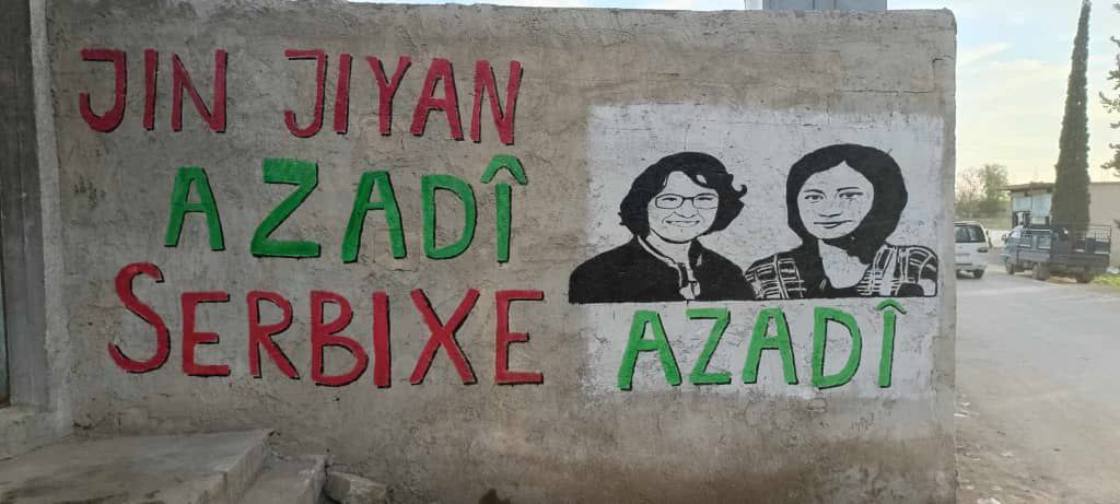 Ayrıca Genç Kadınlar Birliği tarafından yine Kobanê’nin Qenê ilçesinde Şehit Viyan Kobanê, Nujiyan Öcalan anısına duvarda her iki şehidin resimleri çizildi. Ayrıca Komalên Jinên Ciwan tarafından başlatılmış olan “Jin Jiyan Azadî Serbixe Azadî” hamlesinin ismi yazıldı.