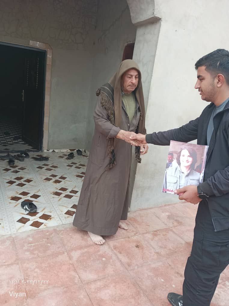 3 gün sonra her 5 gencin şehadetlerinin ikinci yılı dolacak. Bu temelde Kobanê’deki Devrimci Gençlik Hareketi ve Yekitiya Jinên Ciwan üyeleri Kobanê’nin Qinê ilçesinde ev ev gezerek Şehit Viyan Kobanê’nin anısına fotoğraflarını dağıttı.