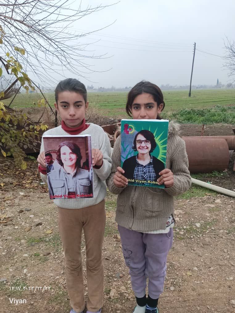 Gençler tarafından ” 25 Aralık 2021 yılında faşist işgalci Türk Devleti’nin saldırısı sonucu şehadete ulaşan yoldaşlarımızı asla unutmayacağız. Biz Koban’ê gençleri olarak onların izinde yürüyeceğimize ve kanlarını yerde bırakmayacağımıza söz veriyoruz. Şehadete ulaşan her 5 arkadaşımızı anıyoruz. Anıları önünde saygıyla eğliyoruz. Onları asla unutmayacağız her zaman mücadelemizde yaşatacağız” denildi.