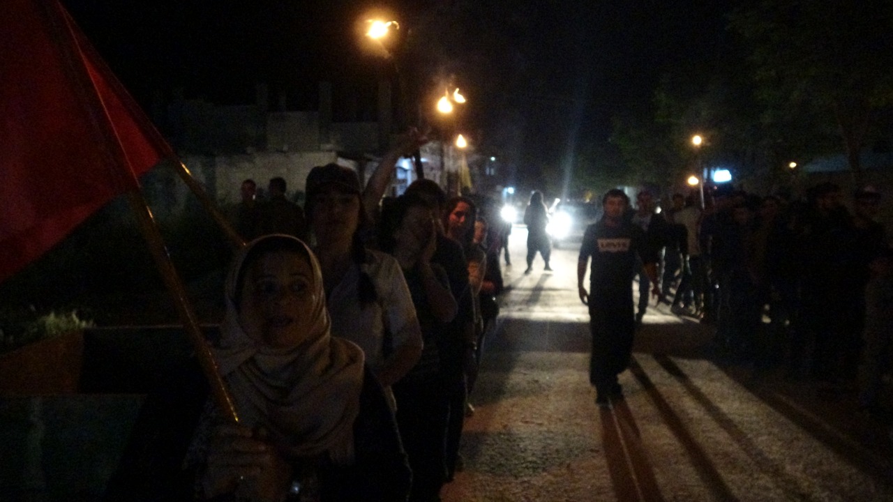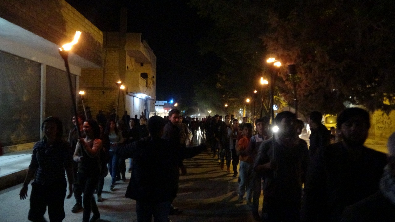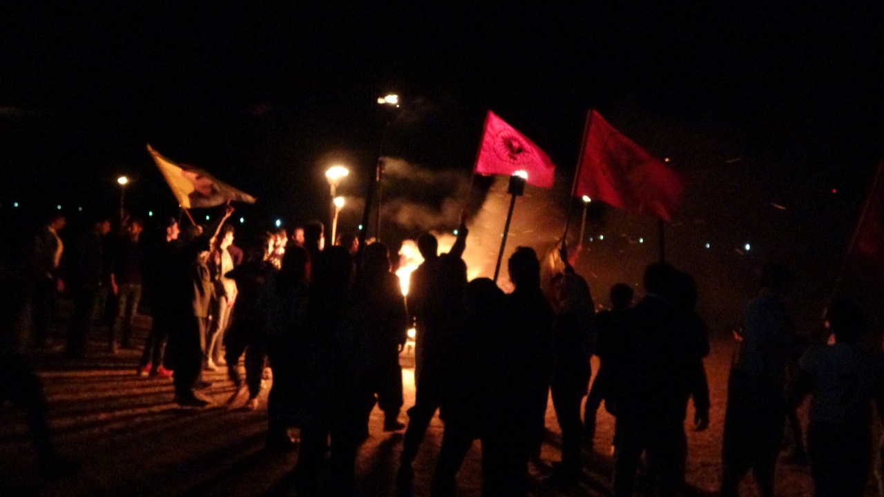 KOBANÊ – Halklar Önderi Abdullah Öcalan üzerindeki tecride karşı Kobanê’de Tevgera Ciwanên Şoreşger öncülüğünde eylemler hamlesi başlatıldı. Merkez Park’ta bir araya gelen gençler ellerinde meşalelerle işgalci Türk devletinin ördüğü duvarlara doğru yürüyüş eylemi gerçekleştirdi.